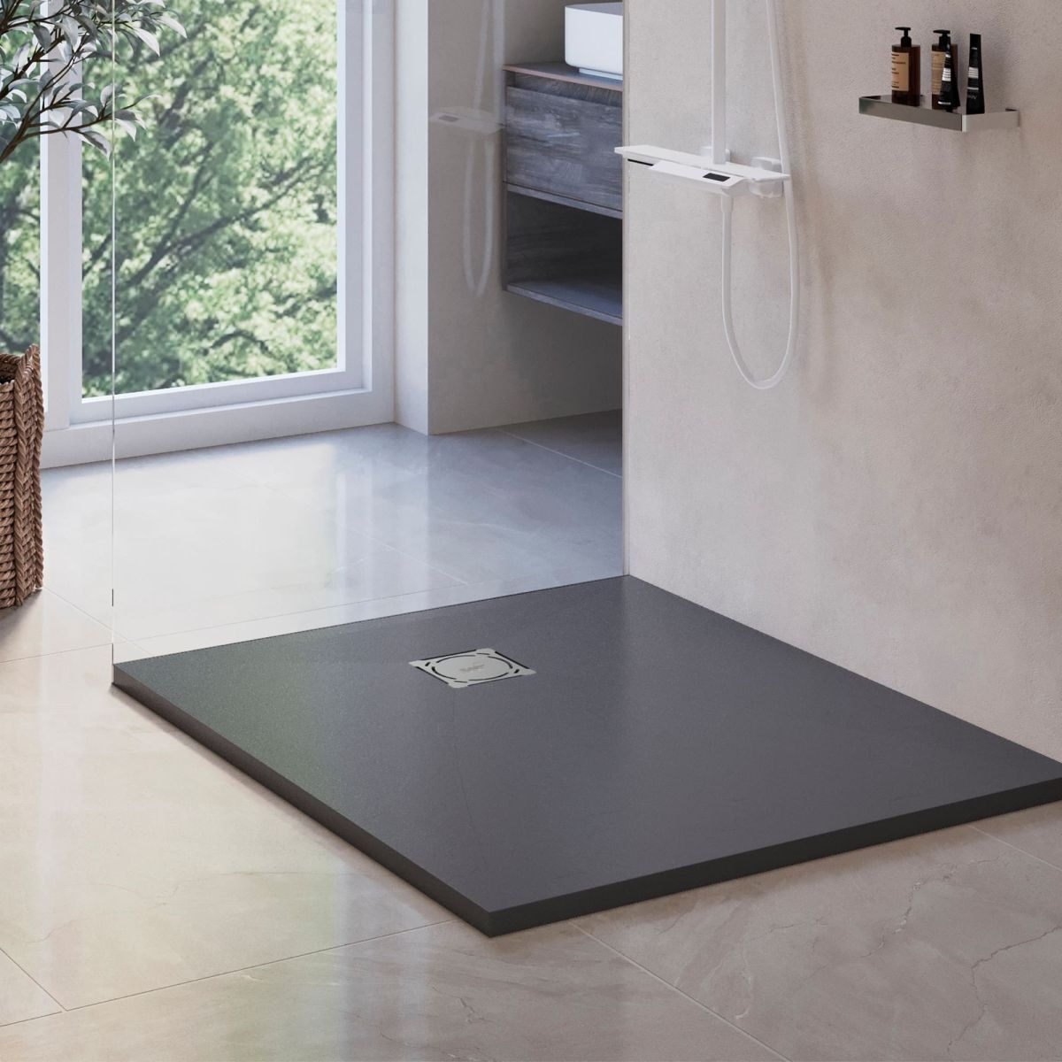 В серии душевых поддонов Stone Tray появилась новинка актуальной прямоугольной формы в остро-модном цвете «графит». Невероятно широкий размерный ряд позволит оптимально использовать пространство ванной комнаты, но если вам нужно воплотить по-настоящему уникальный проект, материал позволяет обрезать изделие по индивидуальному размеру.