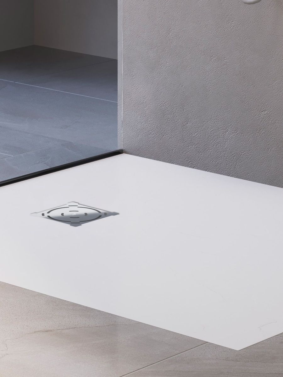 Новый поддон — это самостоятельный аксессуар вашей душевой. Универсальный цвет, откликающийся на уровень освещения, и текстура “под камень” идеально сочетаются с интерьерами от смелых лофт и хайтек до романтичного прованса, а решетка из нержавеющей стали, защищающая слив, создаст безупречный аккомпанемент душевым системам, а таком же оттенке.