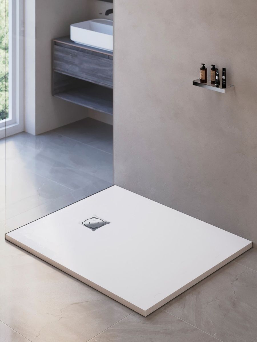 Новый поддон — это самостоятельный аксессуар вашей душевой. Универсальный цвет, откликающийся на уровень освещения, и текстура “под камень” идеально сочетаются с интерьерами от смелых лофт и хайтек до романтичного прованса, а решетка из нержавеющей стали, защищающая слив, создаст безупречный аккомпанемент душевым системам, а таком же оттенке.