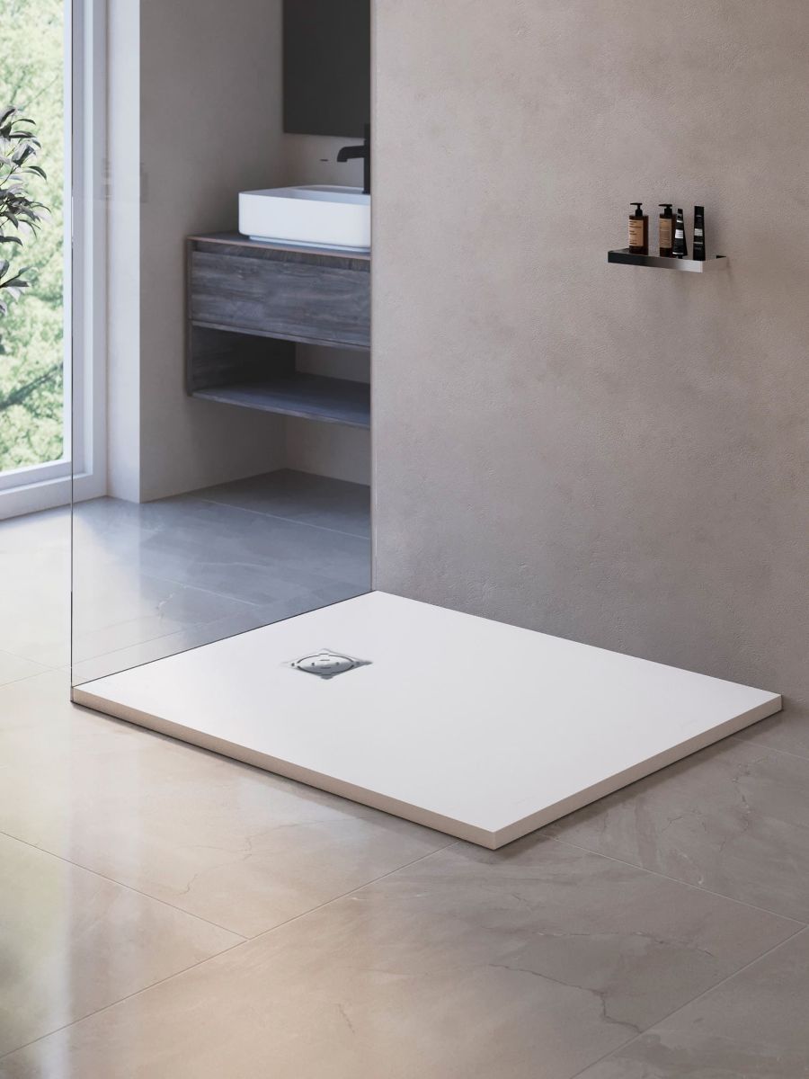 Новый поддон — это самостоятельный аксессуар вашей душевой. Универсальный цвет, откликающийся на уровень освещения, и текстура “под камень” идеально сочетаются с интерьерами от смелых лофт и хайтек до романтичного прованса, а решетка из нержавеющей стали, защищающая слив, создаст безупречный аккомпанемент душевым системам, а таком же оттенке.