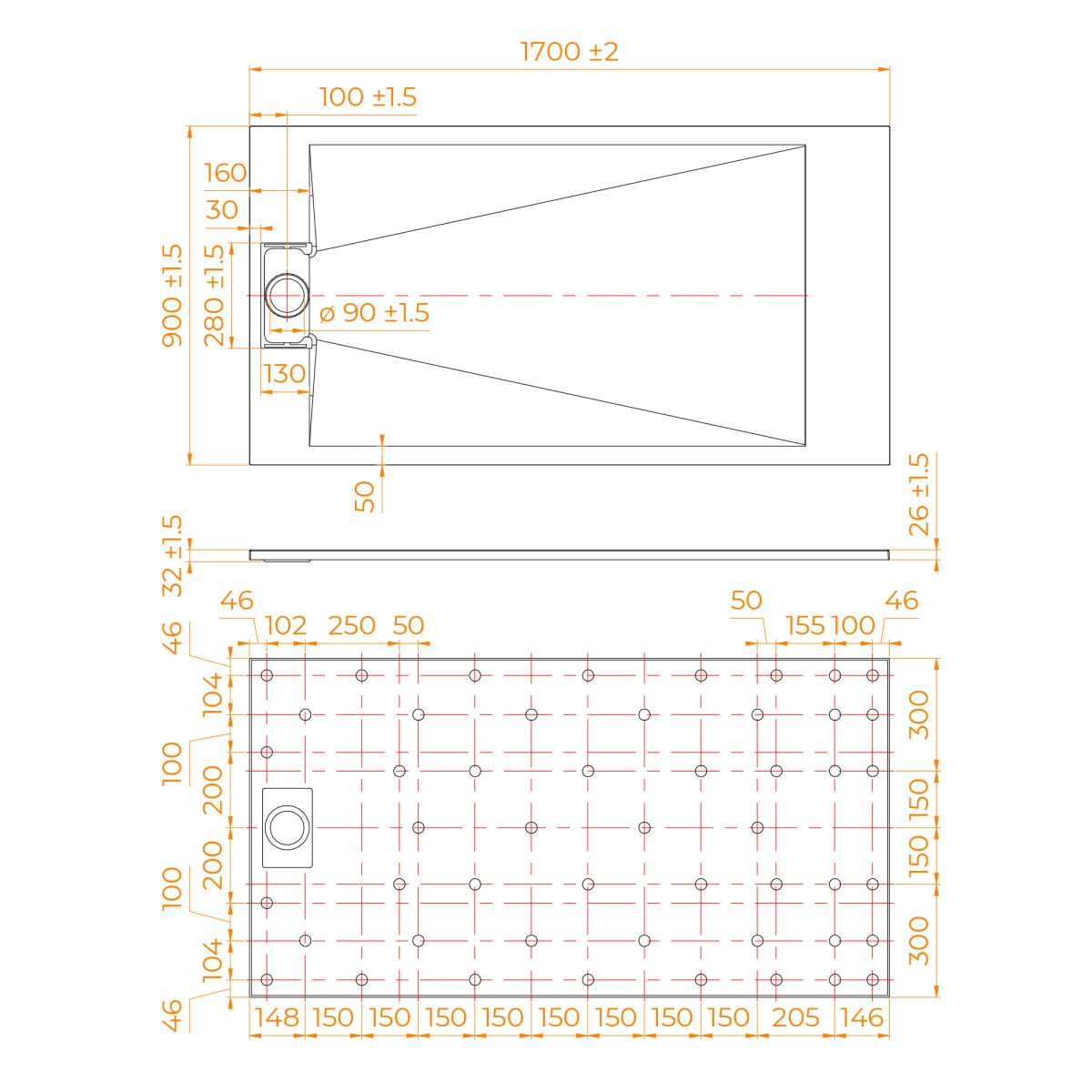 - Высота: 26 мм — Является идеальным вариантом для создания душевой с низким поддоном.