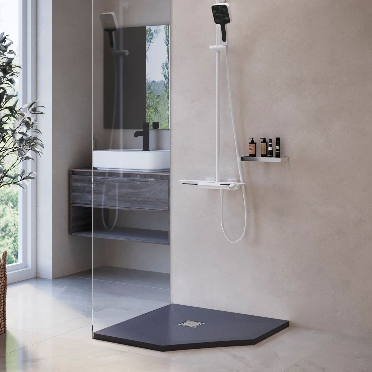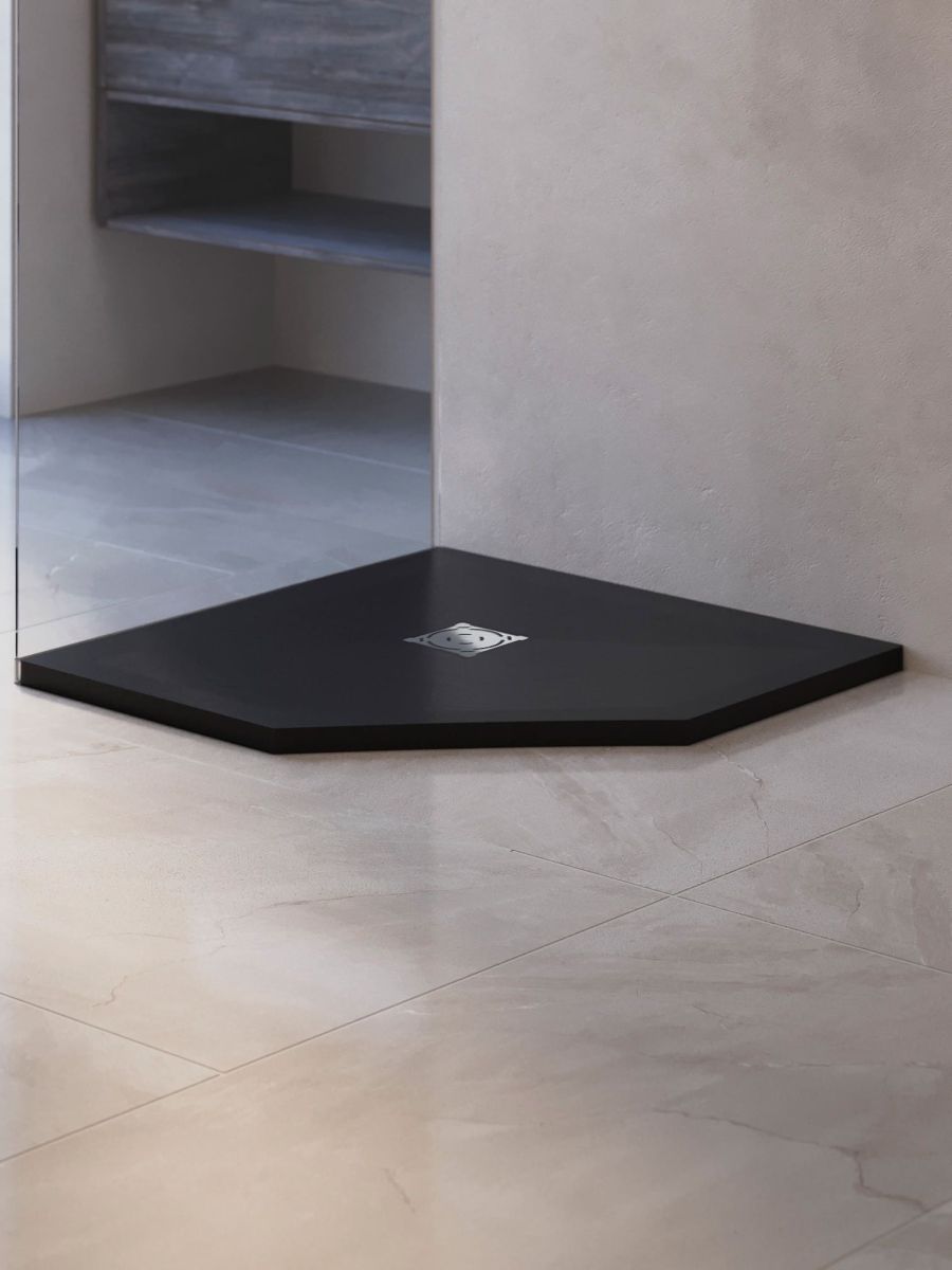 В серии душевых поддонов Stone Tray появилась новинка уникальной трапециевидной формы в остро-модном цвете «графит».