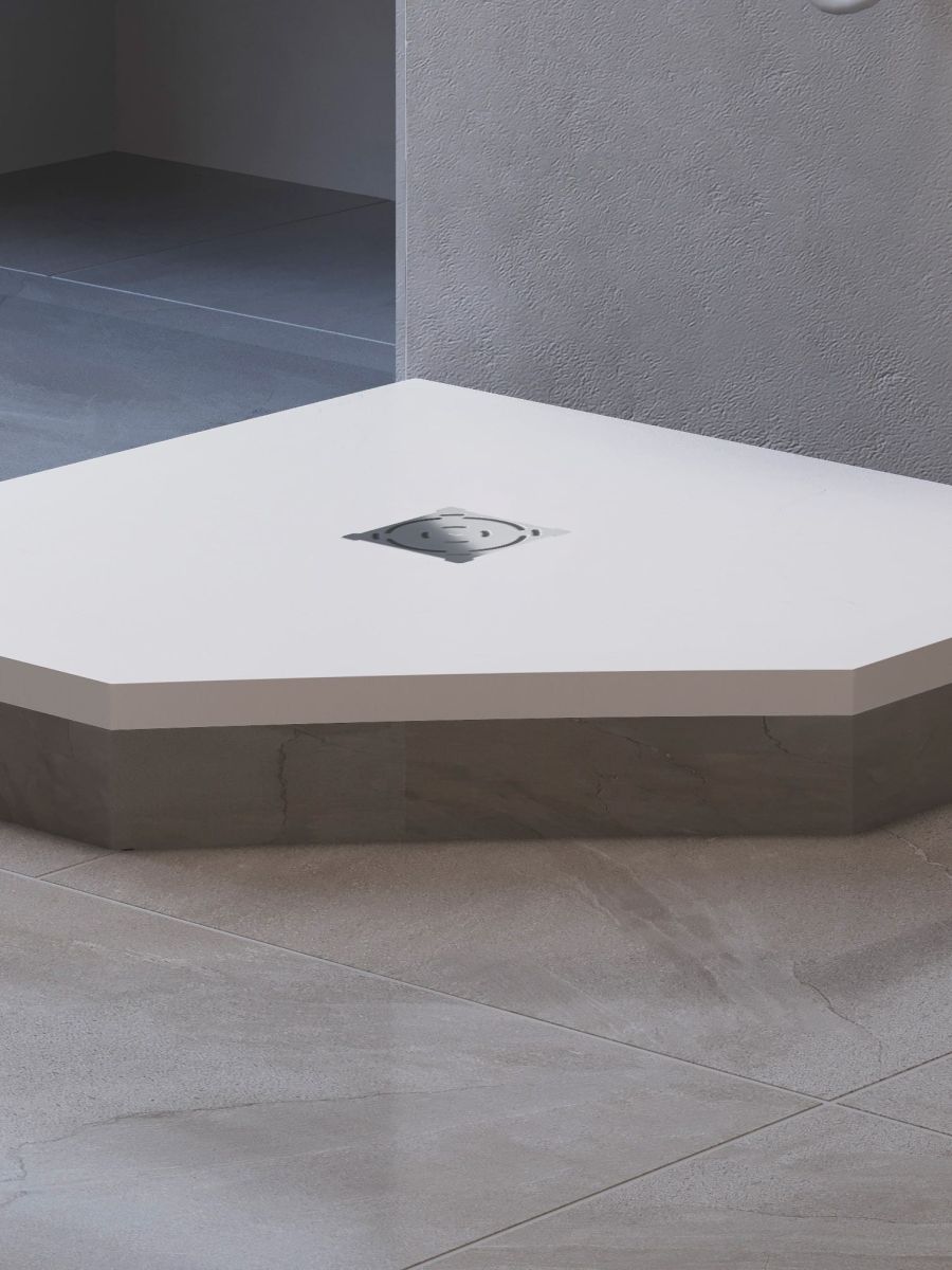 В серии душевых поддонов Stone Tray появилась новинка уникальной трапециевидной формы в роскошном белом цвете и двух форматах. При необходимости мы можем выполнить обрезку изделия по индивидуальному размеру.