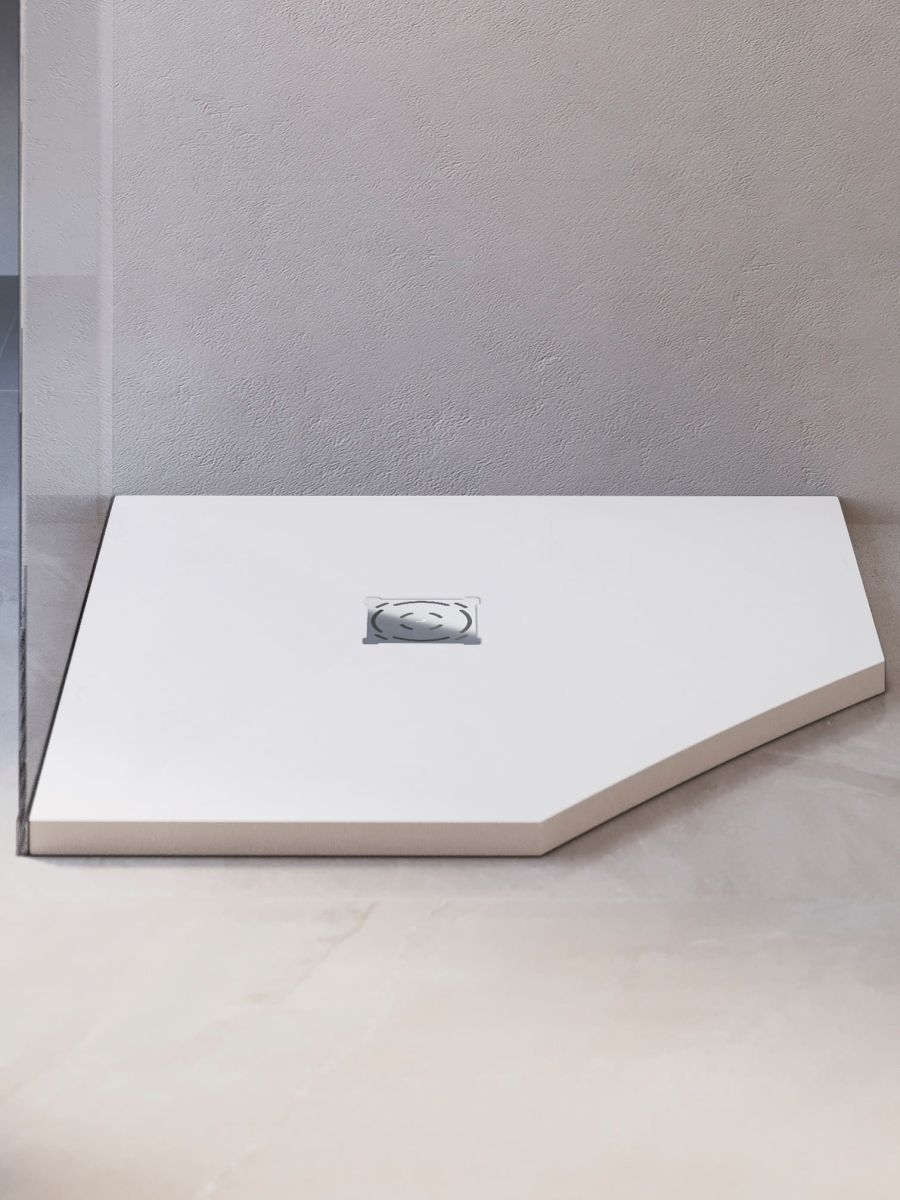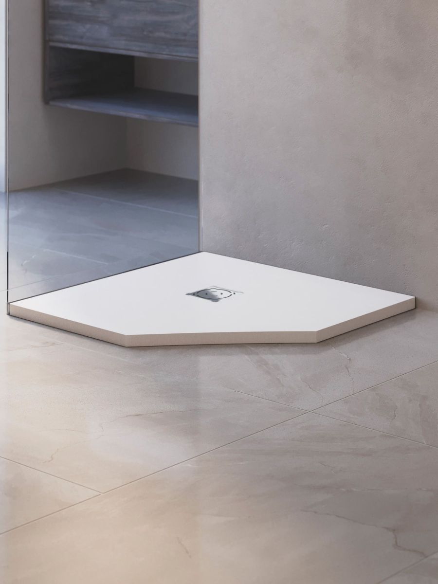 В серии душевых поддонов Stone Tray появилась новинка уникальной трапециевидной формы в роскошном белом цвете и двух форматах. При необходимости мы можем выполнить обрезку изделия по индивидуальному размеру.