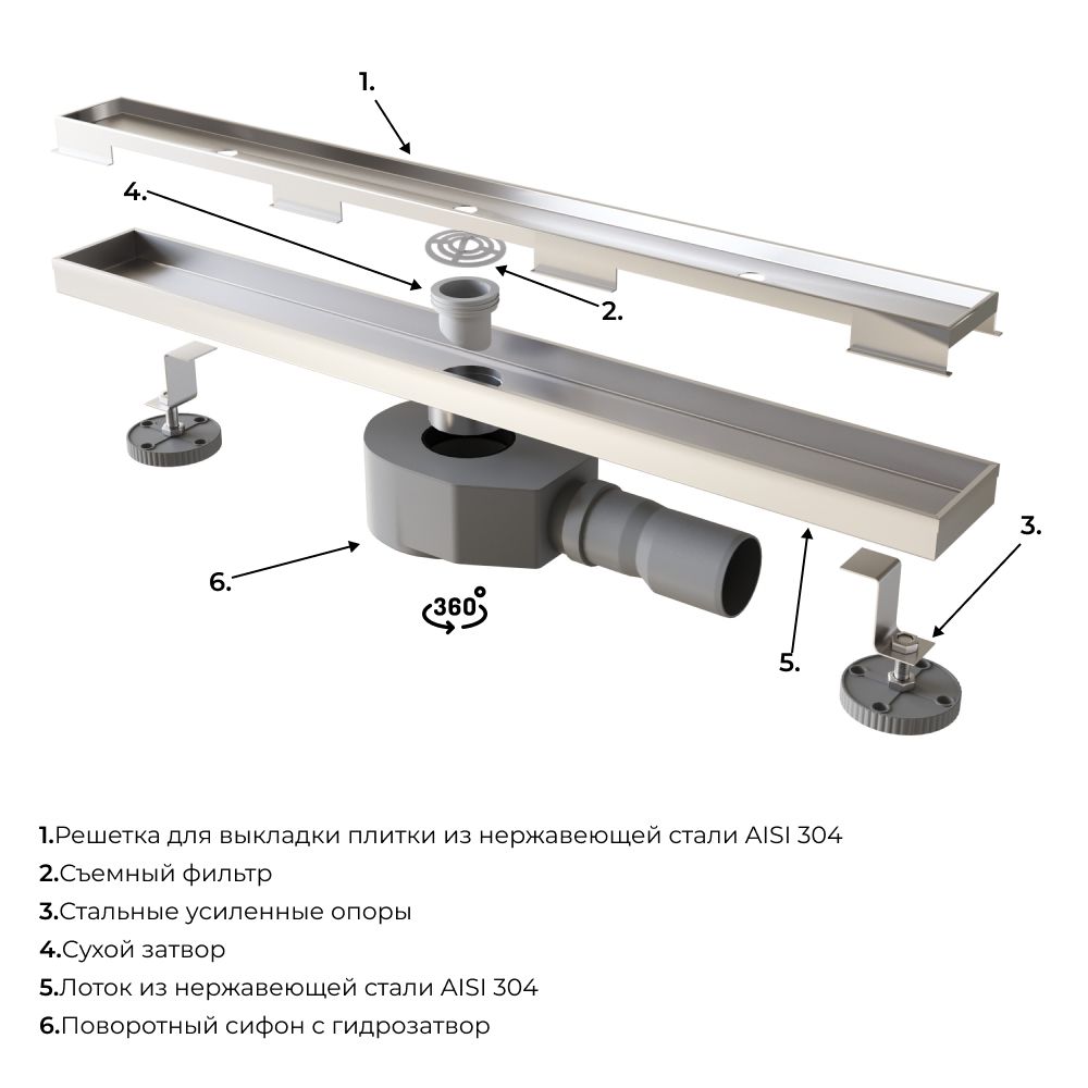 - Высокая пропускная способность 42 л/мин. обеспечит быстрый сток воды.