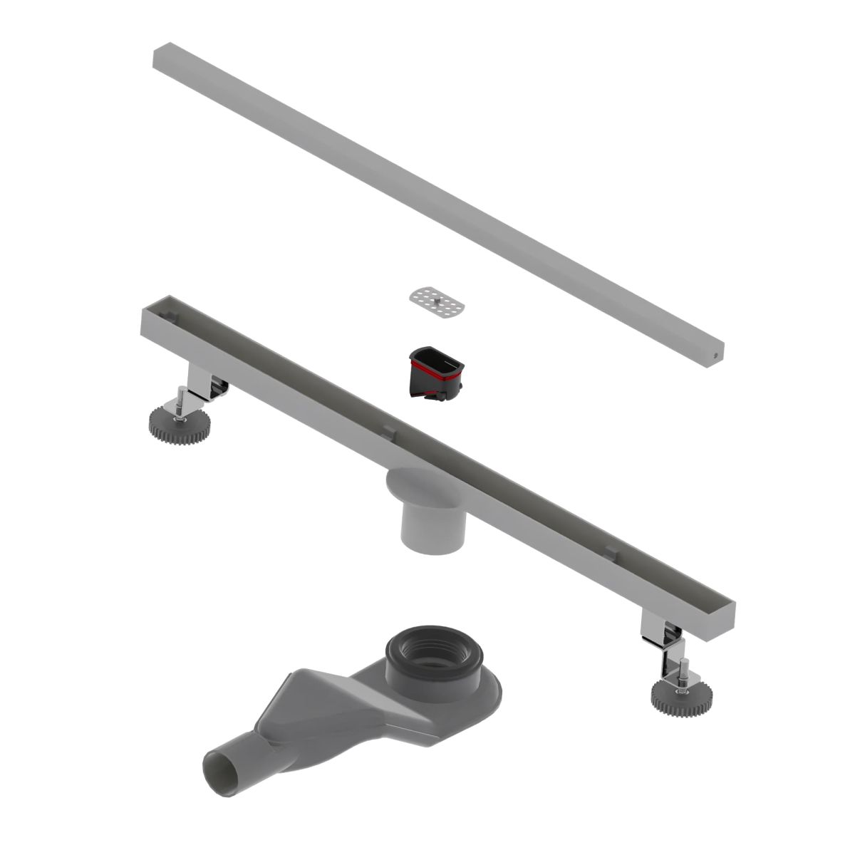 - Гибкость монтажа – линейный горизонтальный и вертикальный слив позволяет установить трап в любом месте, а регулируемые ножки дают возможность точно выставить уровень, даже если пол неровный;