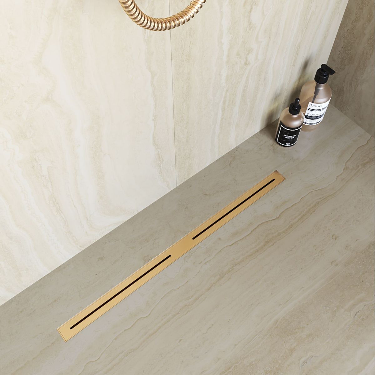 Душевой трап RGW SDR-52Gb однолинейный щелевой Золото браш Ø 50 мм сифон + ножки