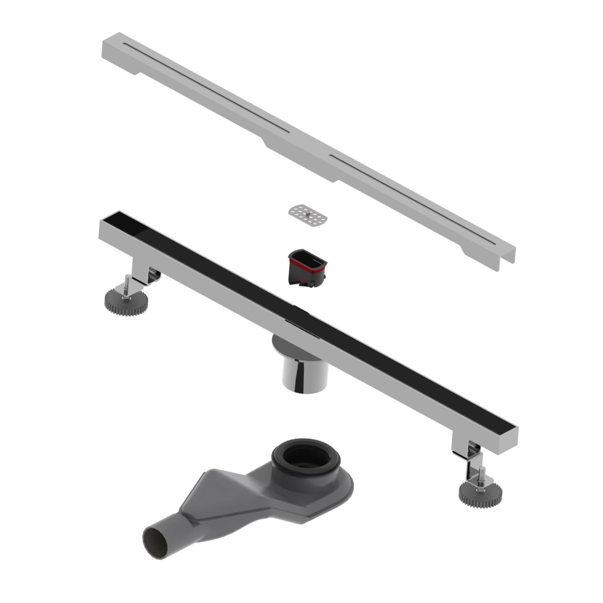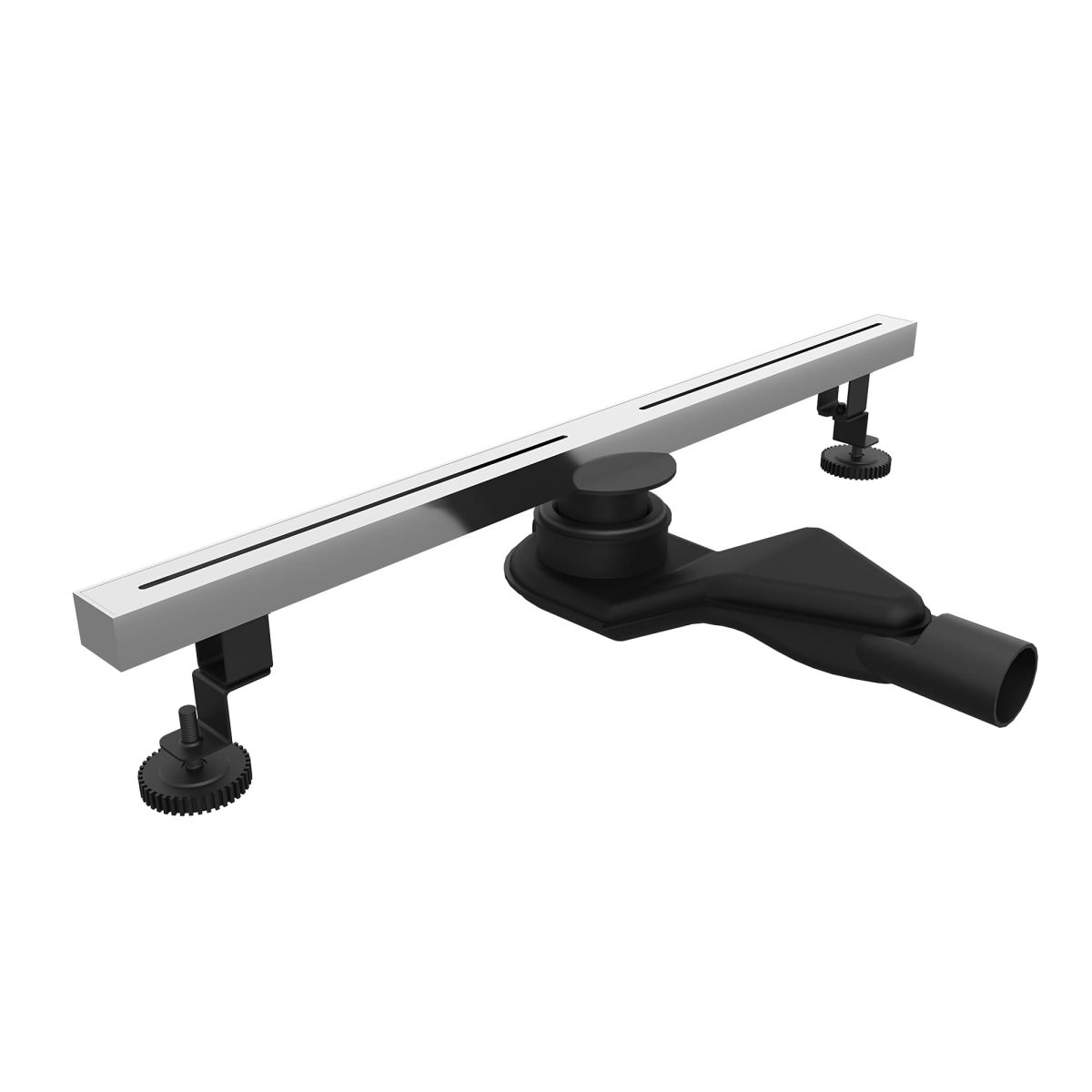 Наличие сухого затвора на магните позволяет изменить горизонтальное применение изделия и сделать душевой трап вертикальным. Для это просто удаляем гидрозатвор и вставляем выход стальной трубы в вертикальную канализацию в выход радиус трубы 50 мм. Душевой щелевой лоток комплектуется двумя стальными ножками на широких опорах с регулировкой высоты от 98-115 мм. Немецкие инженеры специально для компании RGW - Стильные Душевые разработали качественную систему опор под названием - strong tray studs.