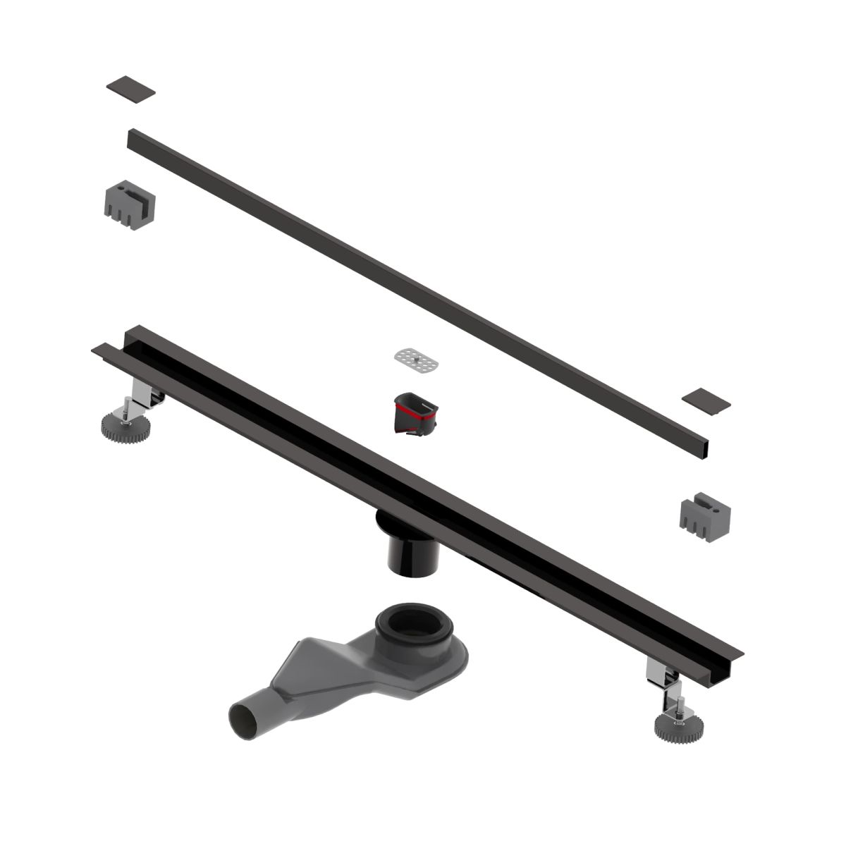 Трап комплектуется двумя усиленными опорами (ножками), крепления для опоры и сами опоры выполнены из нержавеющей стали и имеют регулировку высоты для простой и быстрой установки. За счёт данной конструкции трап можно установить в центре душевого пространства и не возгораться на повреждение конструкции, даже если вы наступаете на него.