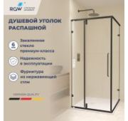 Модель представлена в чёрном исполнении профиля и фурнитуры, также обратите внимания, все уплотнители выполнены так же в чёрном цвете, что подчёркивает сдержанную стилистику душевых углов.