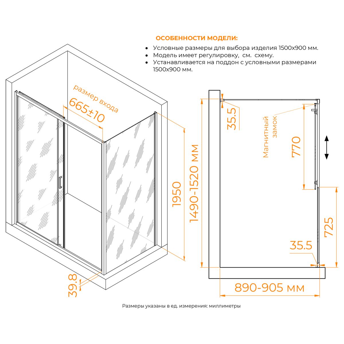 Размеры с диапазоном регулировок: