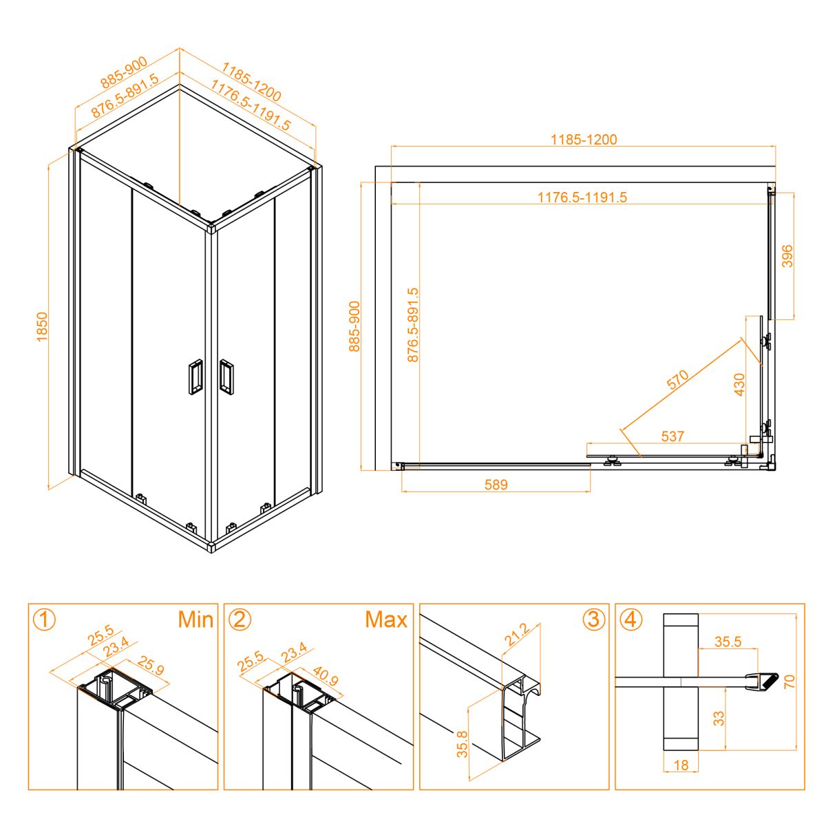 Двери душевого уголка раздвижные, что удобно как в установке, так и в использовании. Их конструкция обеспечивает высокий класс герметичности, чтобы избежать протечек воды и создать максимальный комфорт для пользователя. Благодаря регулируемому профилю душевого уголка можно легко установить и подстроить под любые размеры ванной комнаты.