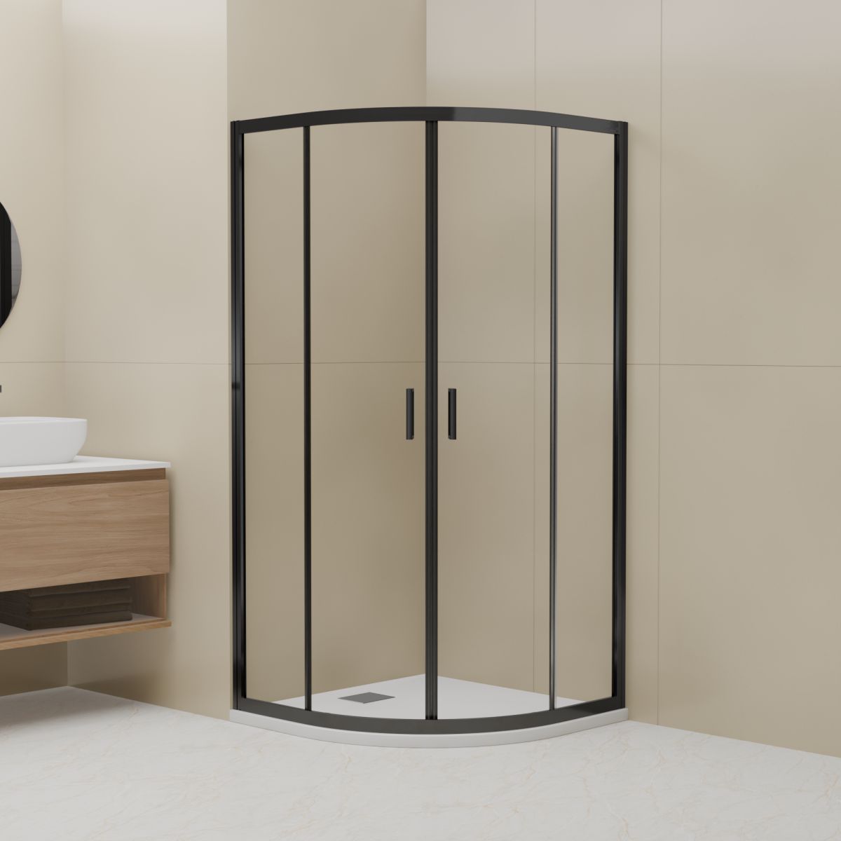 Следующим преимуществом является прозрачное стекло, которое визуально увеличивает пространство ванной комнаты и позволяет получить максимальное количество света. Черный цвет профиля придает душевому углу элегантный и модный вид, который идеально подходит для современных ванных комнат.