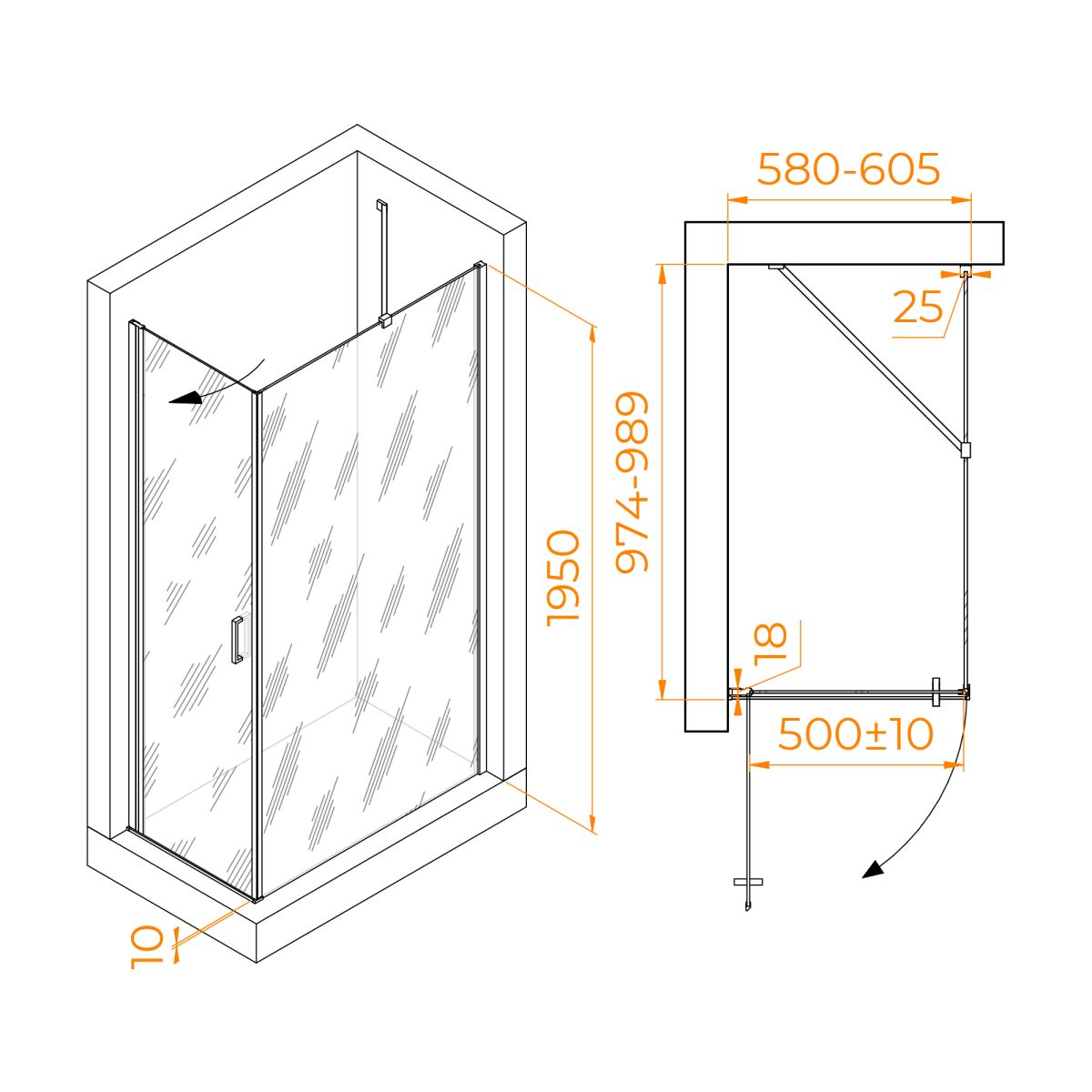Душевой уголок RGW LE-034 (LE-003 + Z-14) 600x1000