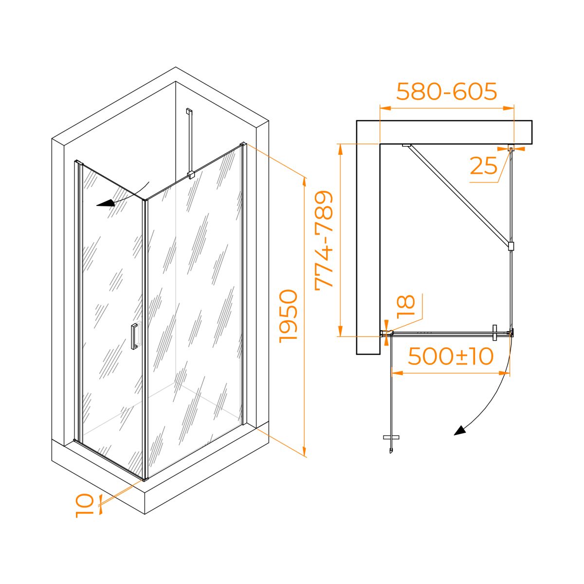 Душевой уголок RGW LE-034 (LE-003 + Z-14) 600x800