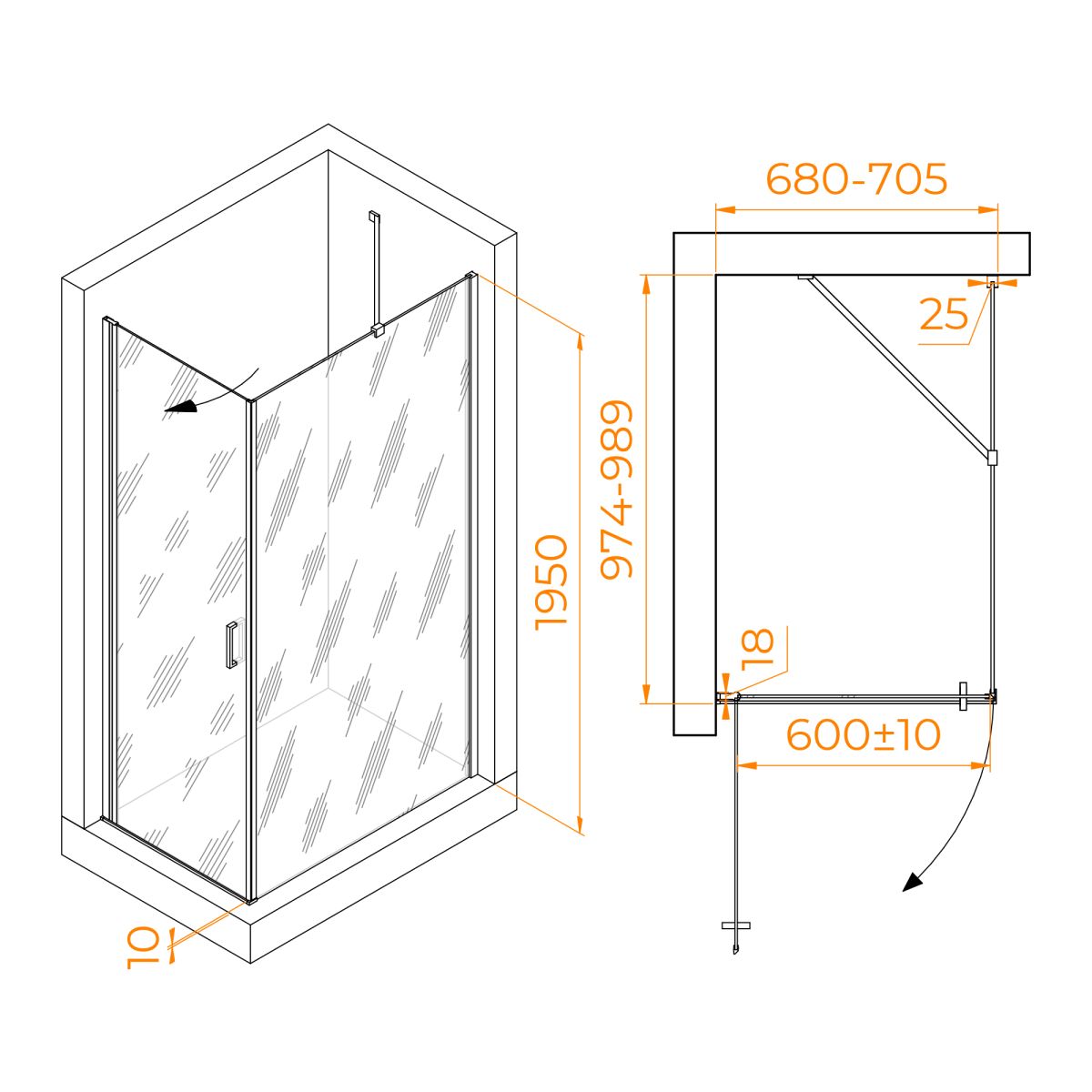 Душевой уголок RGW LE-034 (LE-003 + Z-14) 700x1000
