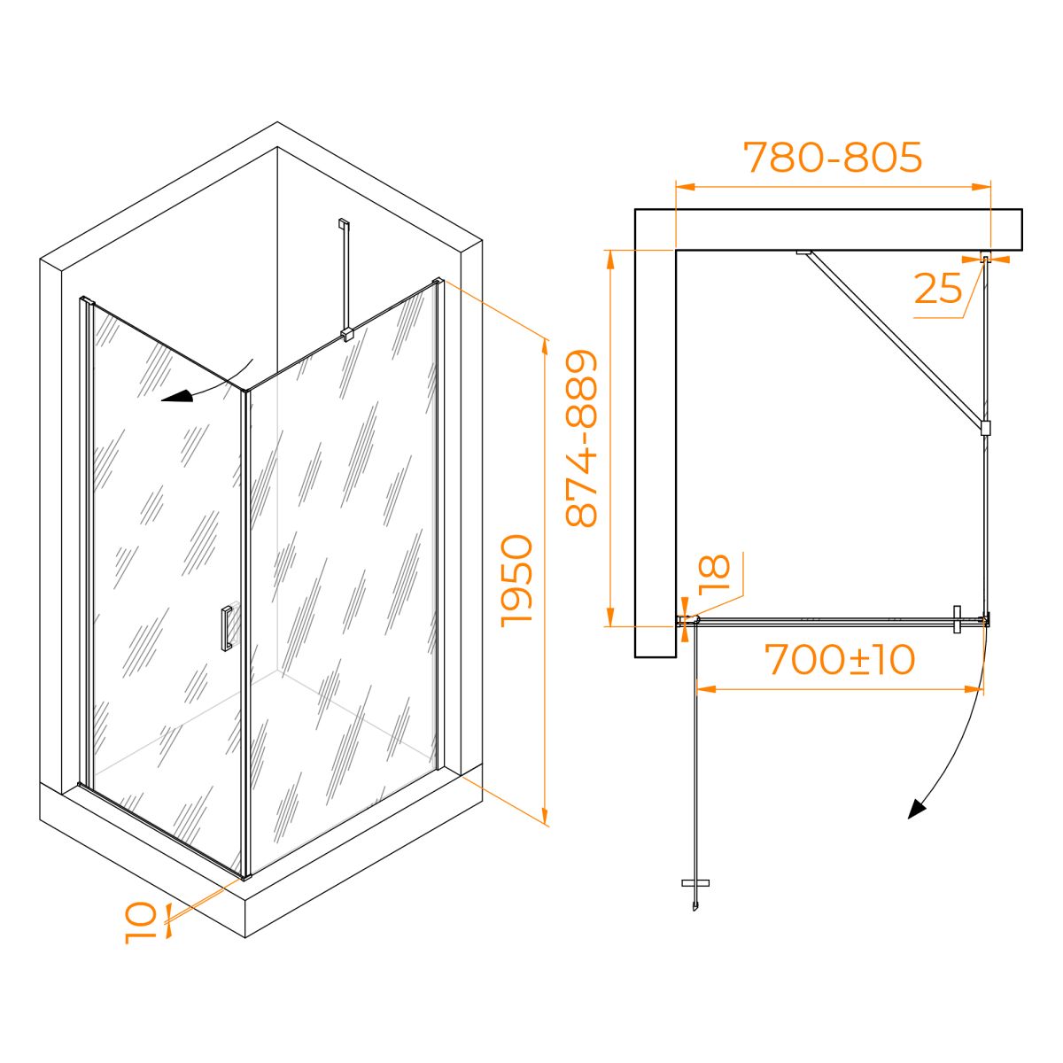 Душевой уголок RGW LE-034 (LE-003 + Z-14) 800x900