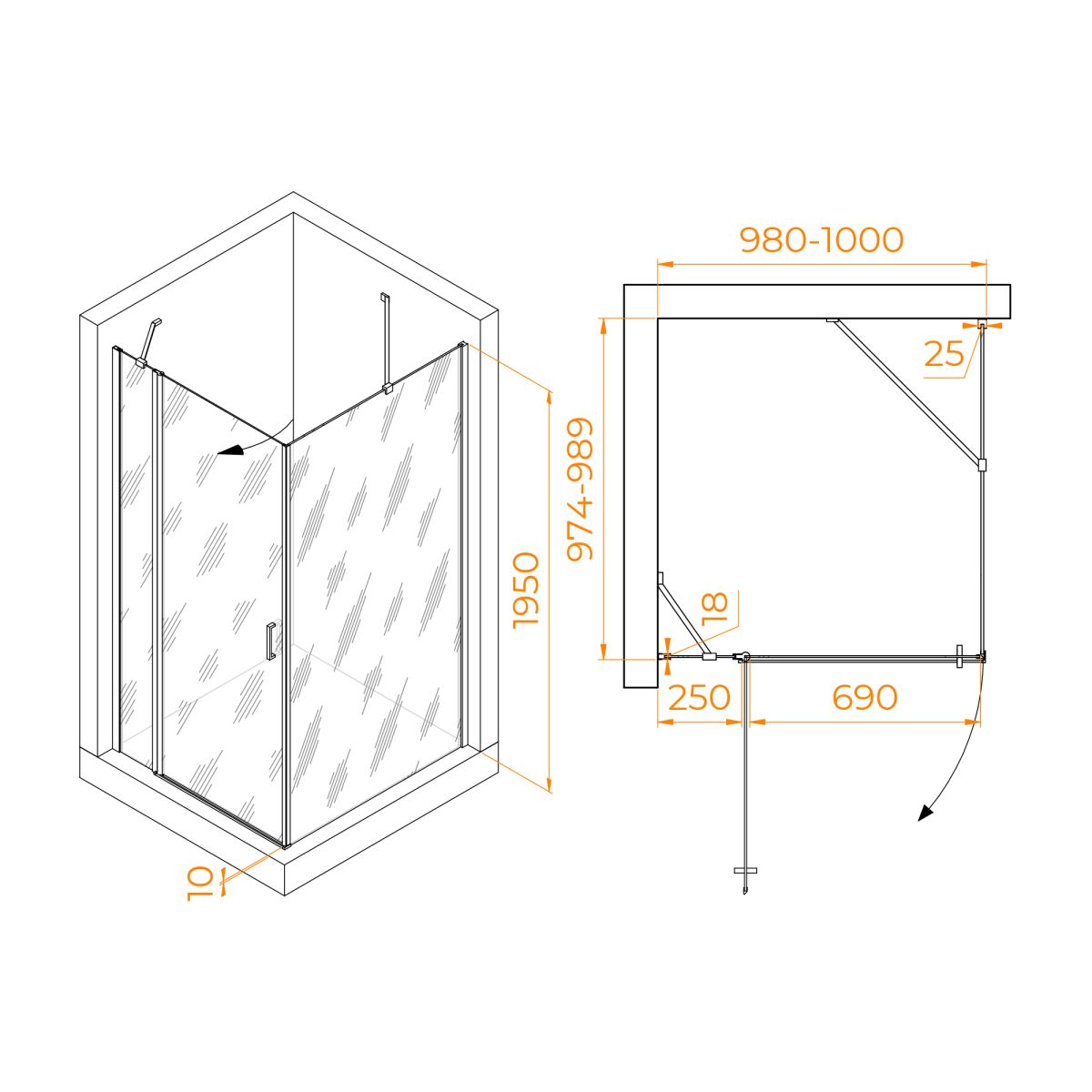 Душевой уголок RGW LE-044 (LE-004+Z-14) 1000x1000