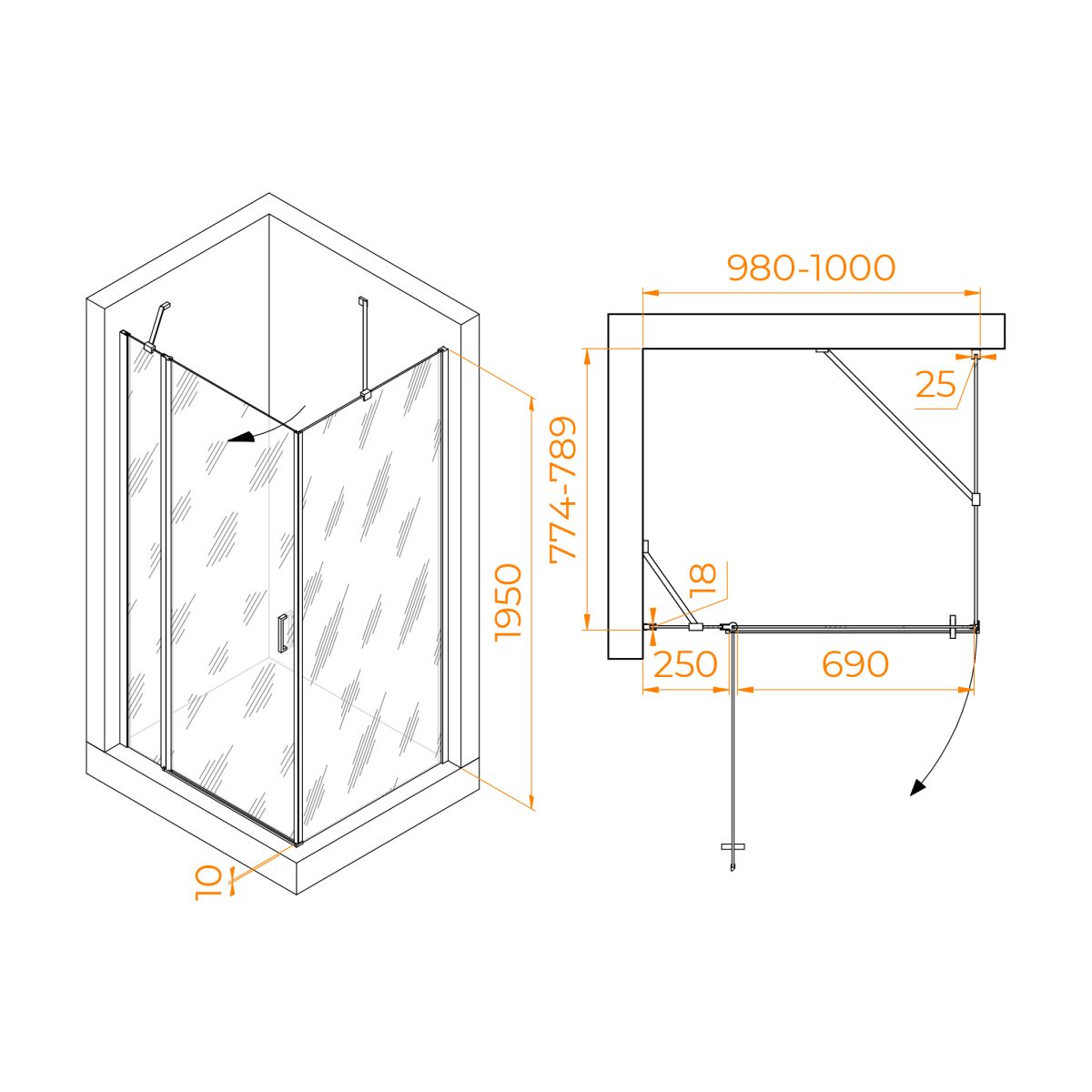 Душевой уголок RGW LE-044 (LE-004+Z-14) 1000x800