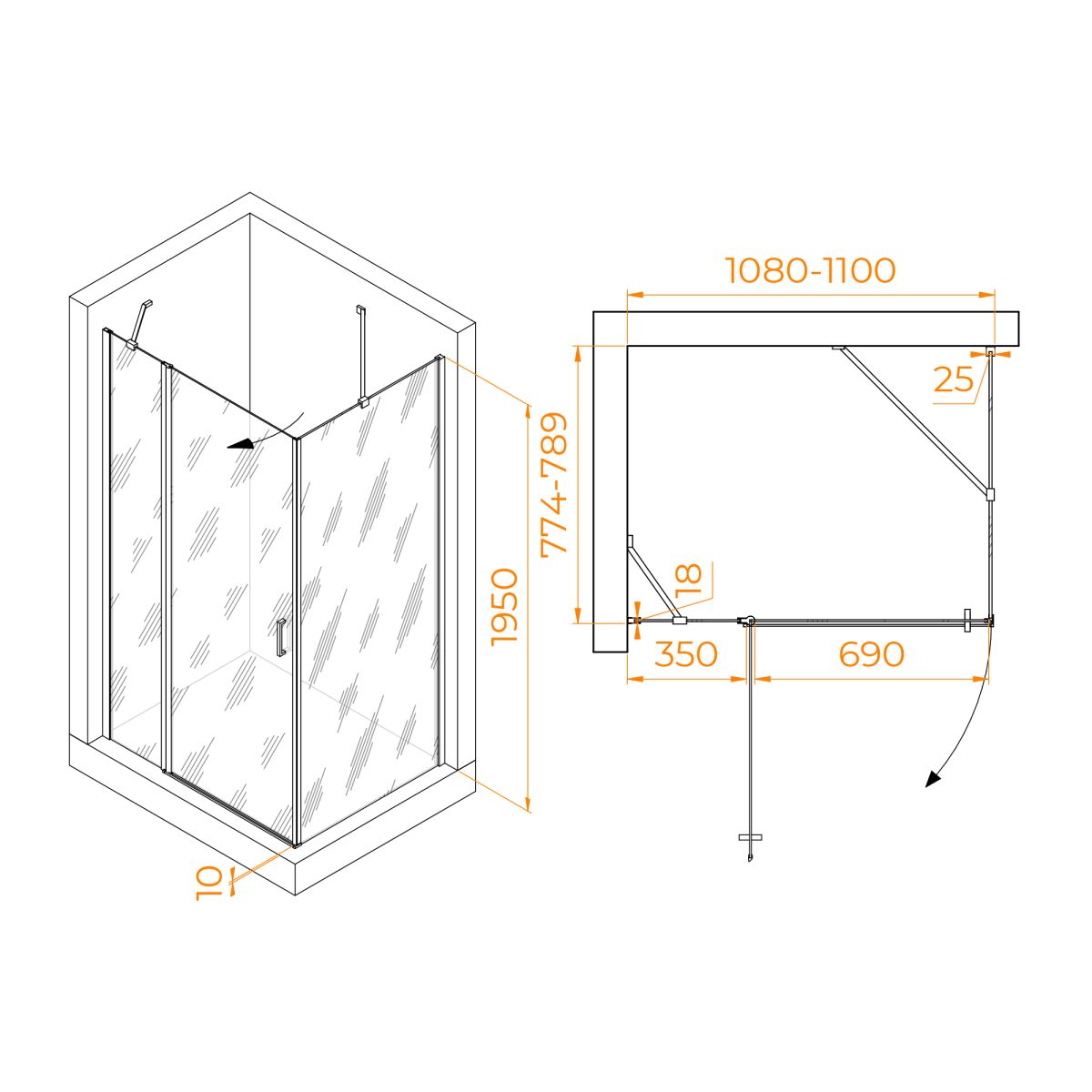 Душевой уголок RGW LE-044 состоит из душевой двери RGW LE-004 и боковой панели RGW Z-14. Установка боковой стенки со стороны открытия двери. В комплекте нижняя пороговая планка. Установка модели универсальная.