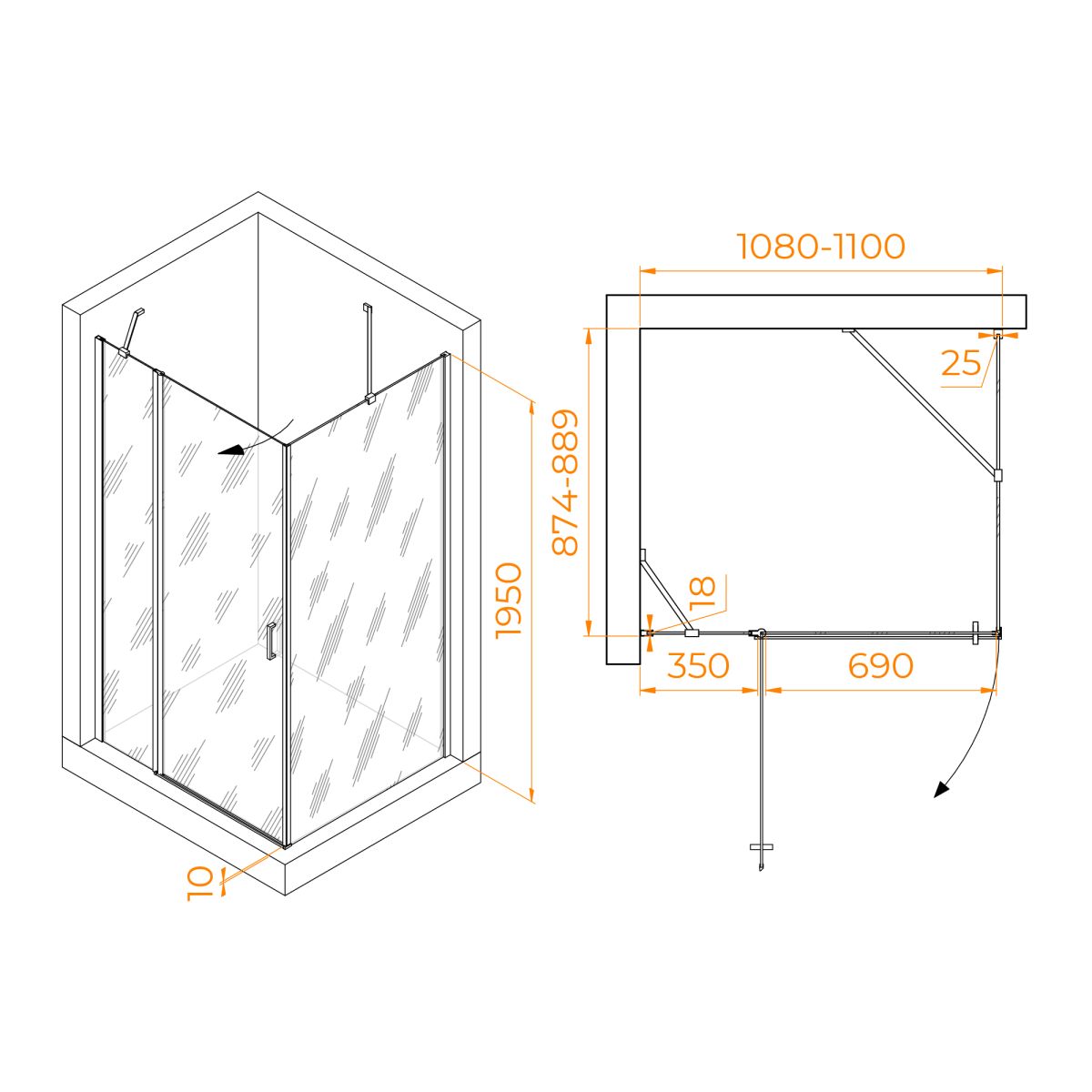 Душевой уголок RGW LE-044 состоит из душевой двери RGW LE-004 и боковой панели RGW Z-14. Установка боковой стенки со стороны открытия двери. В комплекте нижняя пороговая планка. Установка модели универсальная.