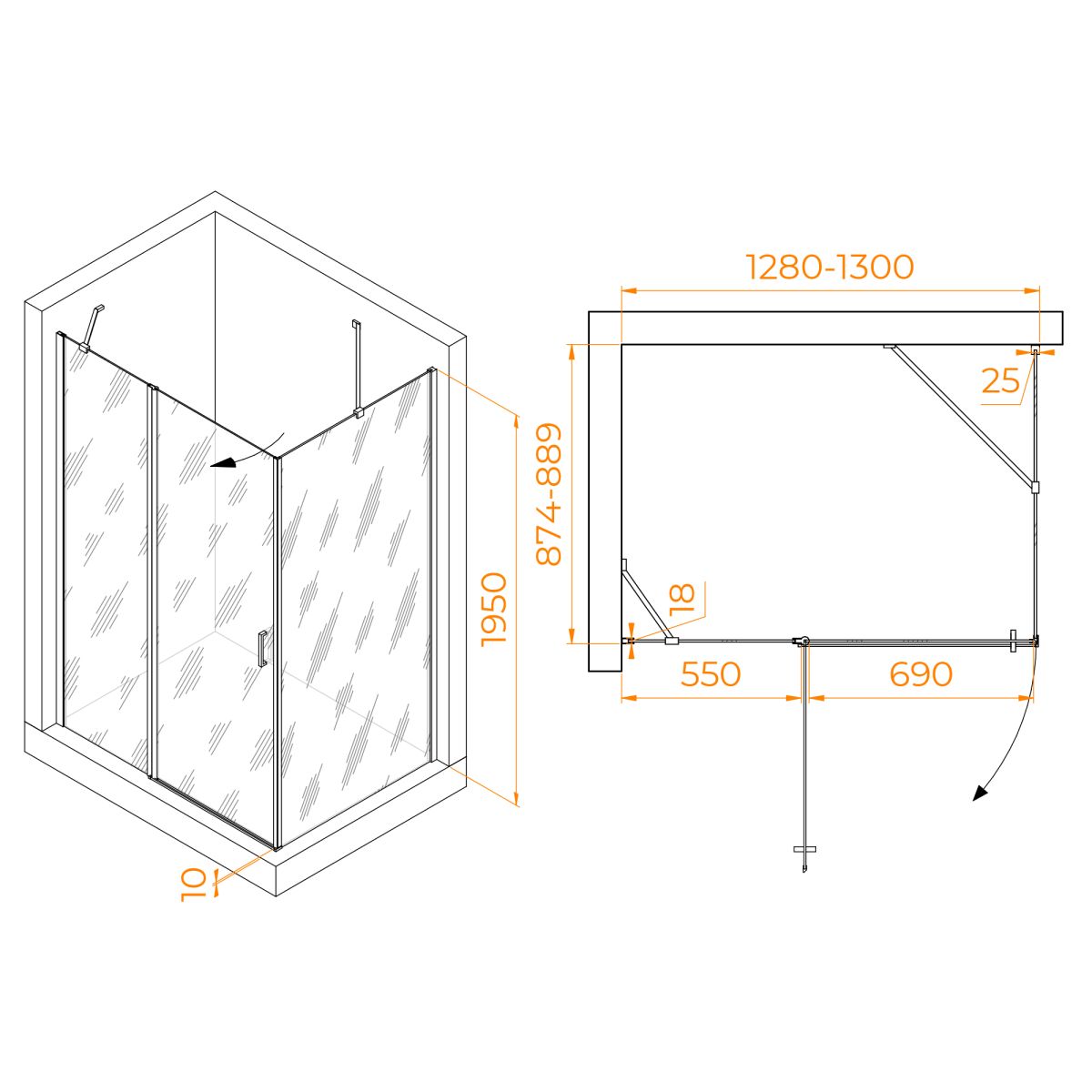 Душевой уголок RGW LE-044 (LE-004+Z-14) 1300x900