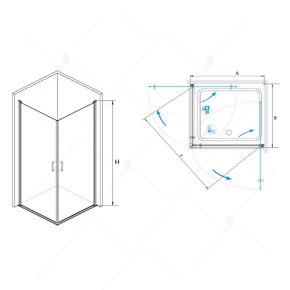 Конструкция дверей маятниковые, что обеспечивает быстрый и легкий доступ к душевой зоне, а также позволяет сохранять большое пространство в ванной комнате. Двери имеют регулируемый профиль, что позволяет легко настроить их по высоте и ширине под индивидуальные потребности пользователя.