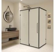 Профиль уголка окрашен в черный цвет, что придает ему элегантный и современный вид. Кроме того, он регулируемый, что позволяет пользователю настроить уголок под определенные размеры ванных комнат.