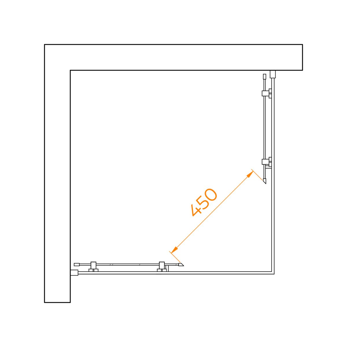 Форма душевого угла квадратная, что обеспечивает возможность осуществления установки уголка в различные углы ванной комнаты. А высота душевого угла 1950 мм позволит использовать его без неудобств, даже для высоких людей.