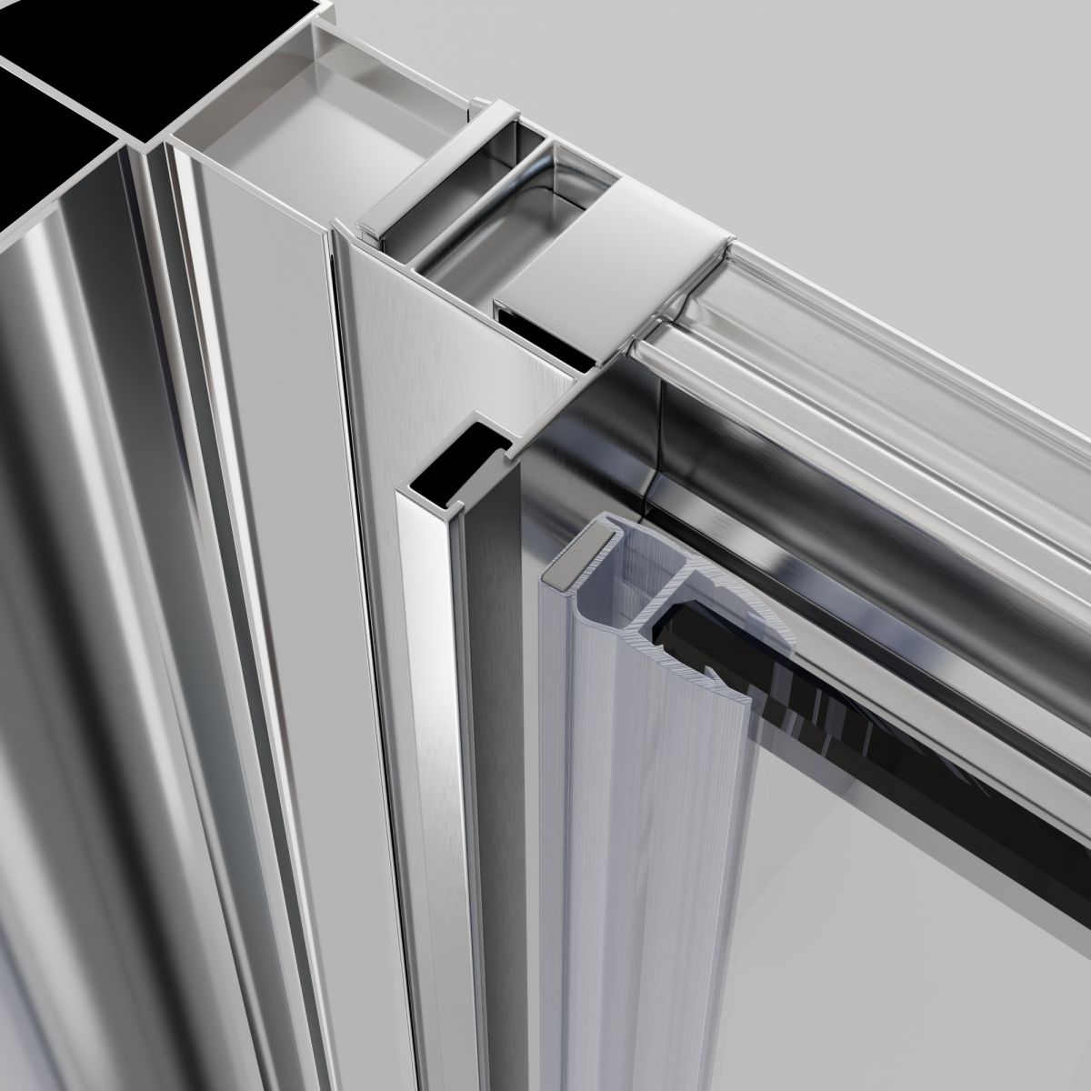 Широкие, усиленные профили по всему периметру изделия образуют раму каркасного типа из алюминия «ALUSTRONG MAX» - анодирование алюминия. Такая технология обеспечивает безупречную стабильность конструкции в течение всего срока эксплуатации - 15 лет. Профиль производится из чистого алюминия без вторичных добавок. Для повышения твердости металл погружают в ванну, заполненную раствором кислоты, и пропускают электрический ток. В результате на поверхности изделия образуется прочный оксидный слой, стойкий к коррозии с равномерным покрытием цвета. Цвет "блестящий хром" достигается в процессе анодирования – это дорогостоящий вариант обработки, поэтому модели такого цвета особенно ценны на рынке душевых ограждений.