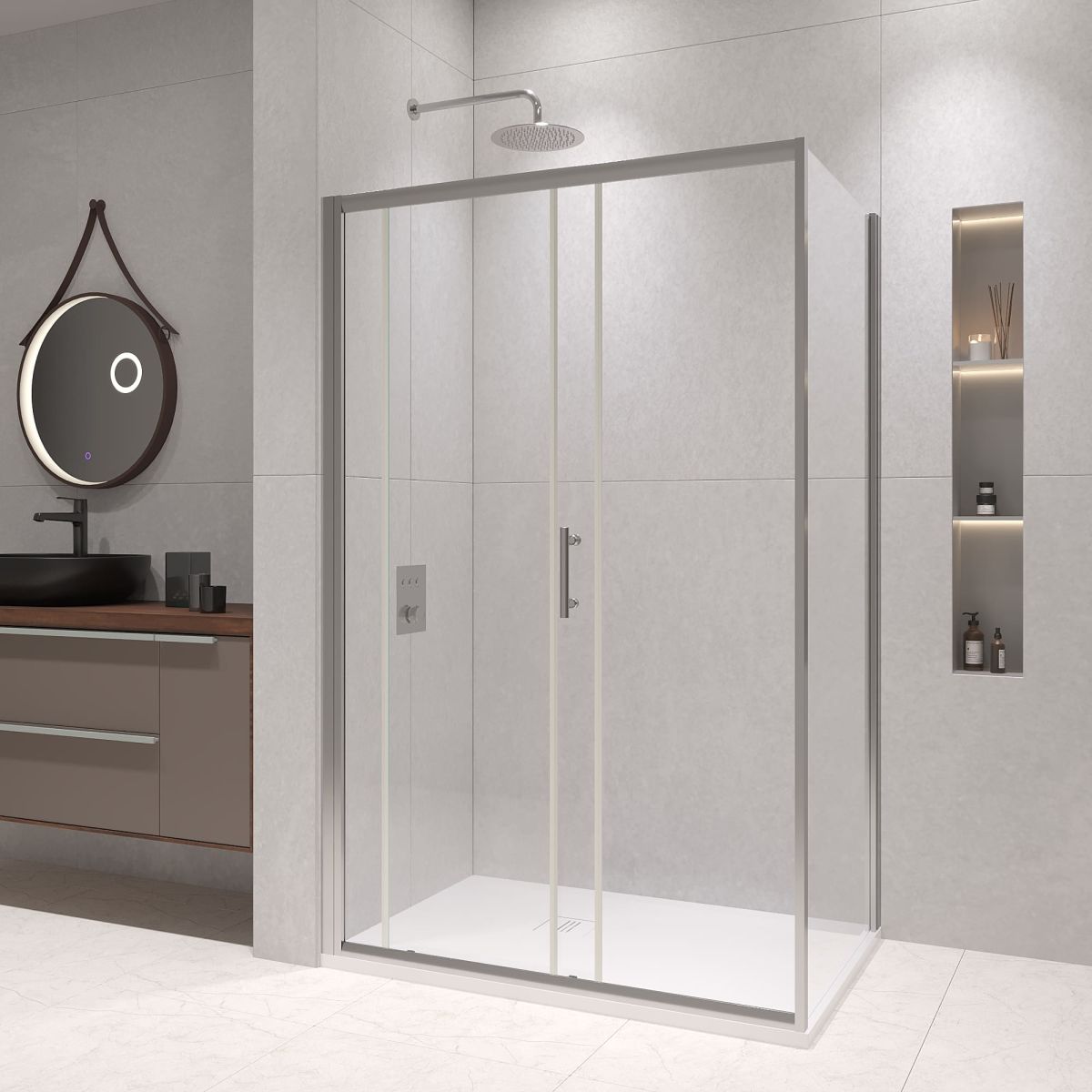 Двойные регулируемые ролики обеспечивают легкость открывания и закрывания дверей душевого уголка, а также плавность и бесшумность движения. Конструкция дверей раздвижная, что также способствует экономии места в ванной комнате.