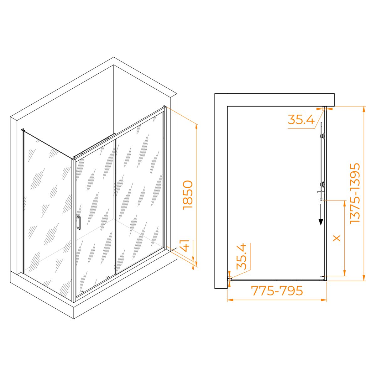 Душевой уголок имеет прямоугольную форму, которая позволяет эффективно использовать пространство в ванной комнате. Высота душевого угла составляет 1850 мм, что обеспечивает комфортное пребывание внутри него.