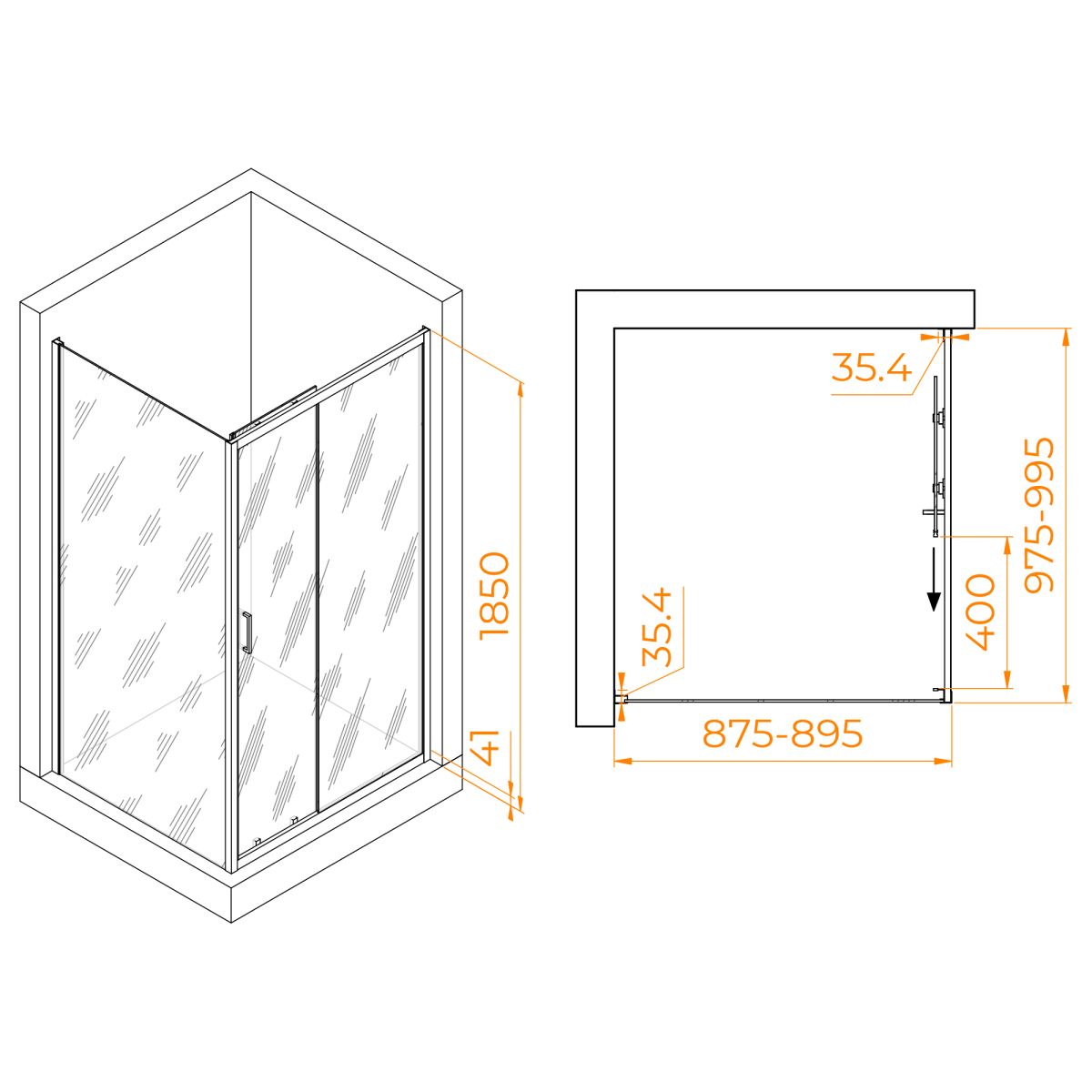 Душевой уголок имеет прямоугольную форму, которая позволяет эффективно использовать пространство в ванной комнате. Высота душевого угла составляет 1850 мм, что обеспечивает комфортное пребывание внутри него.