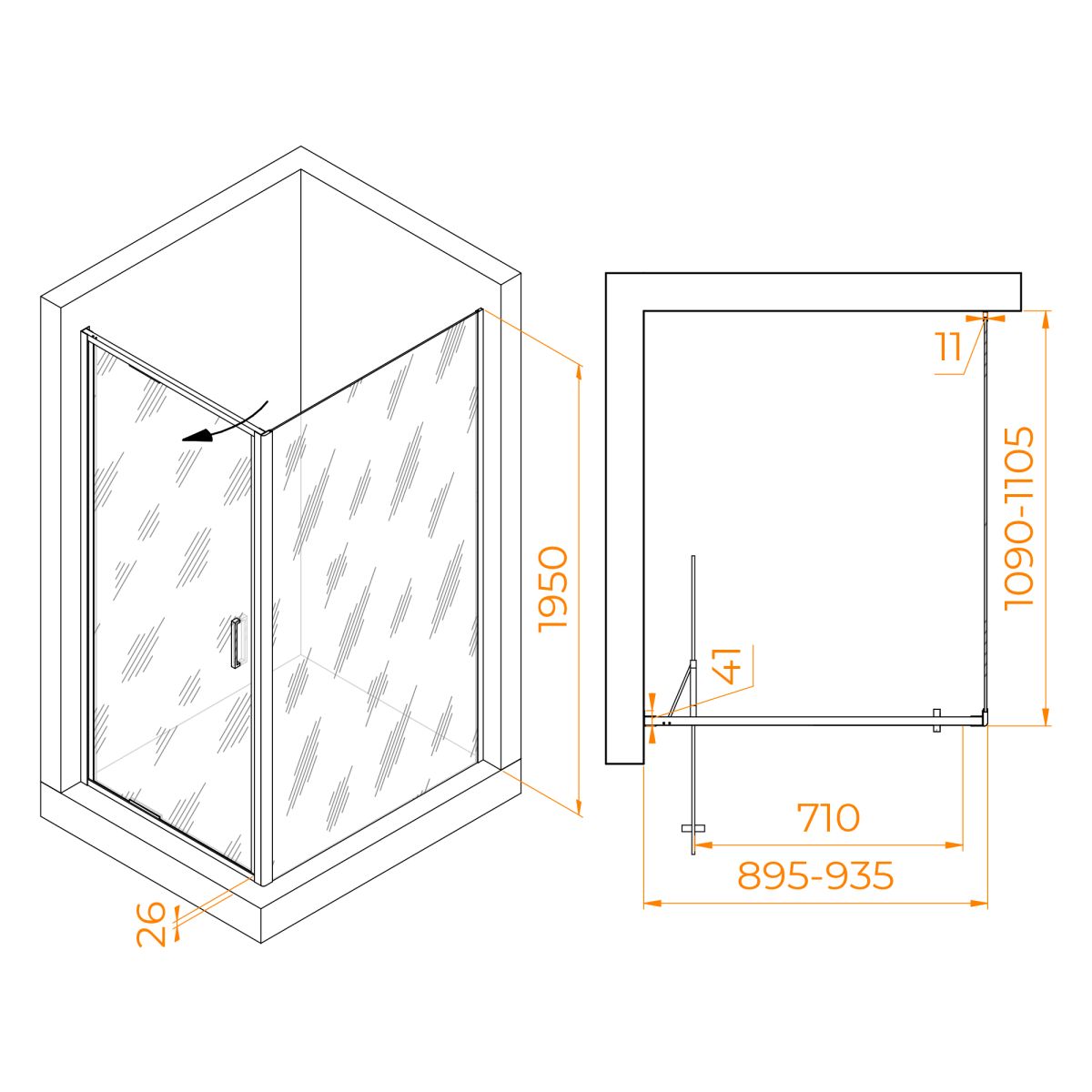 Душевая дверь для ниши роторная при установке образует квадратную либо прямоугольную душевую зону.