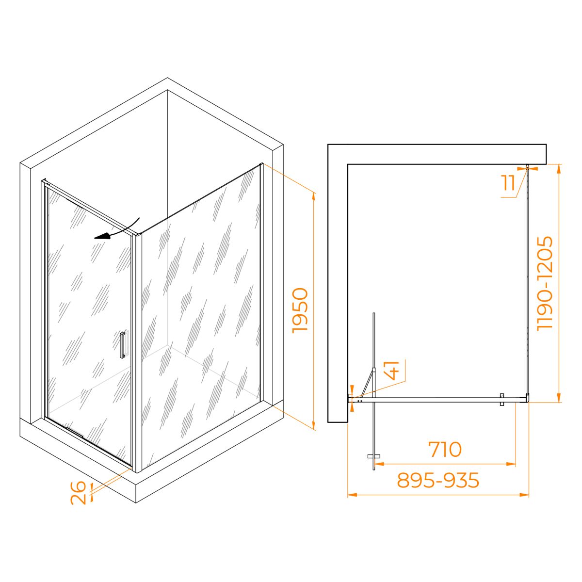 Душевая дверь для ниши роторная при установке образует квадратную либо прямоугольную душевую зону.