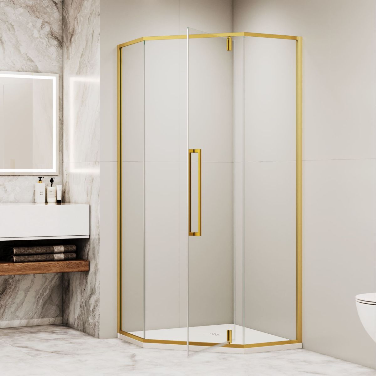 Один из главных преимуществ этого душевого уголка - это его прозрачное стекло. Это позволяет создать максимально комфортные условия для принятия душа и придать ванной комнате легкий и прозрачный вид. Цвет профиля, золото brush, способствует созданию элегантного и стильного дизайна.