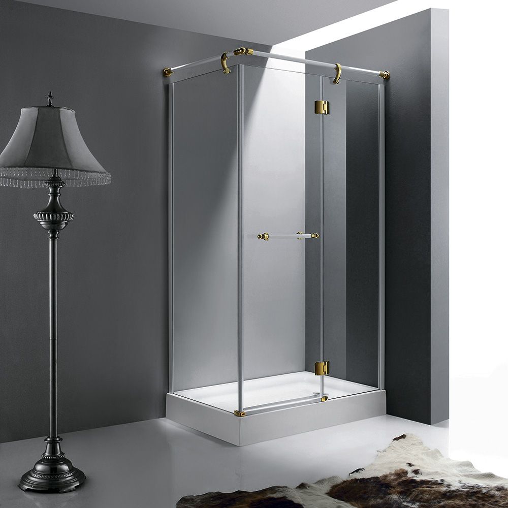 Материал профилей душевого уголка анодированный алюминий, он обладает высокой устойчивостью к коррозии и повреждениям. Цвет профиля белый-золото, который отлично подойдет к большинству интерьеров ванной комнаты, делая душевой уголок не только функциональным, но и стильным элементом.