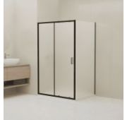 Универсальный душевой уголок из стекла с раздвижными дверьми, образует квадратную душевую зону со входом с угла. Стеклянный уголок, ограждающий водяной поток, состоит из двух – стационарных полотен и двух раздвигающихся полотен - «Дверь», которые установлены на ролики. При открытии двери плавно сдвигаются, раскрывая широкий вход с угла.
