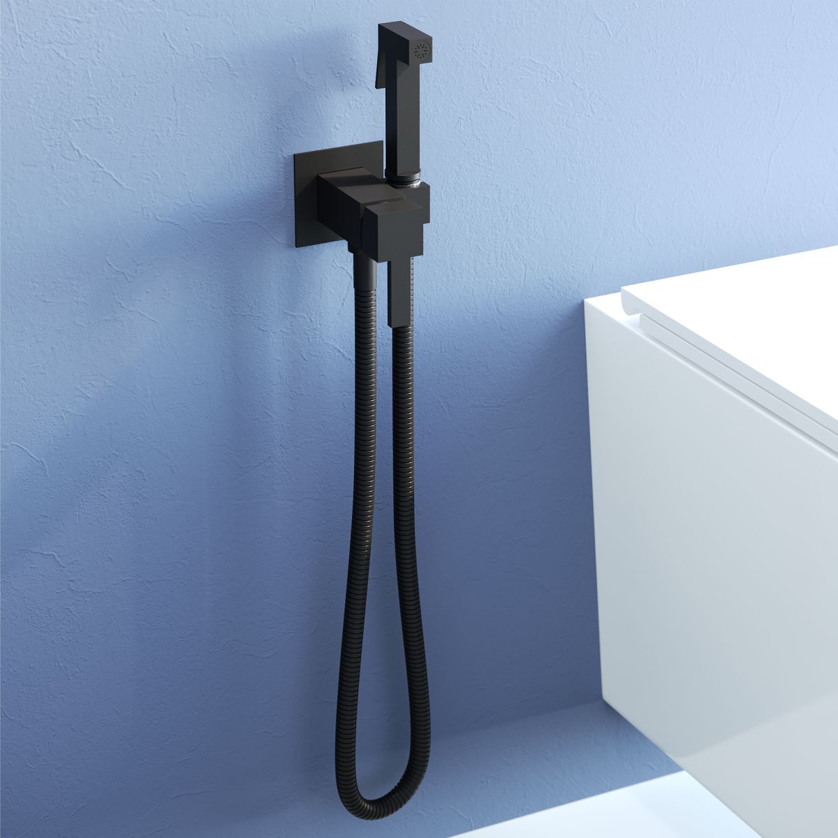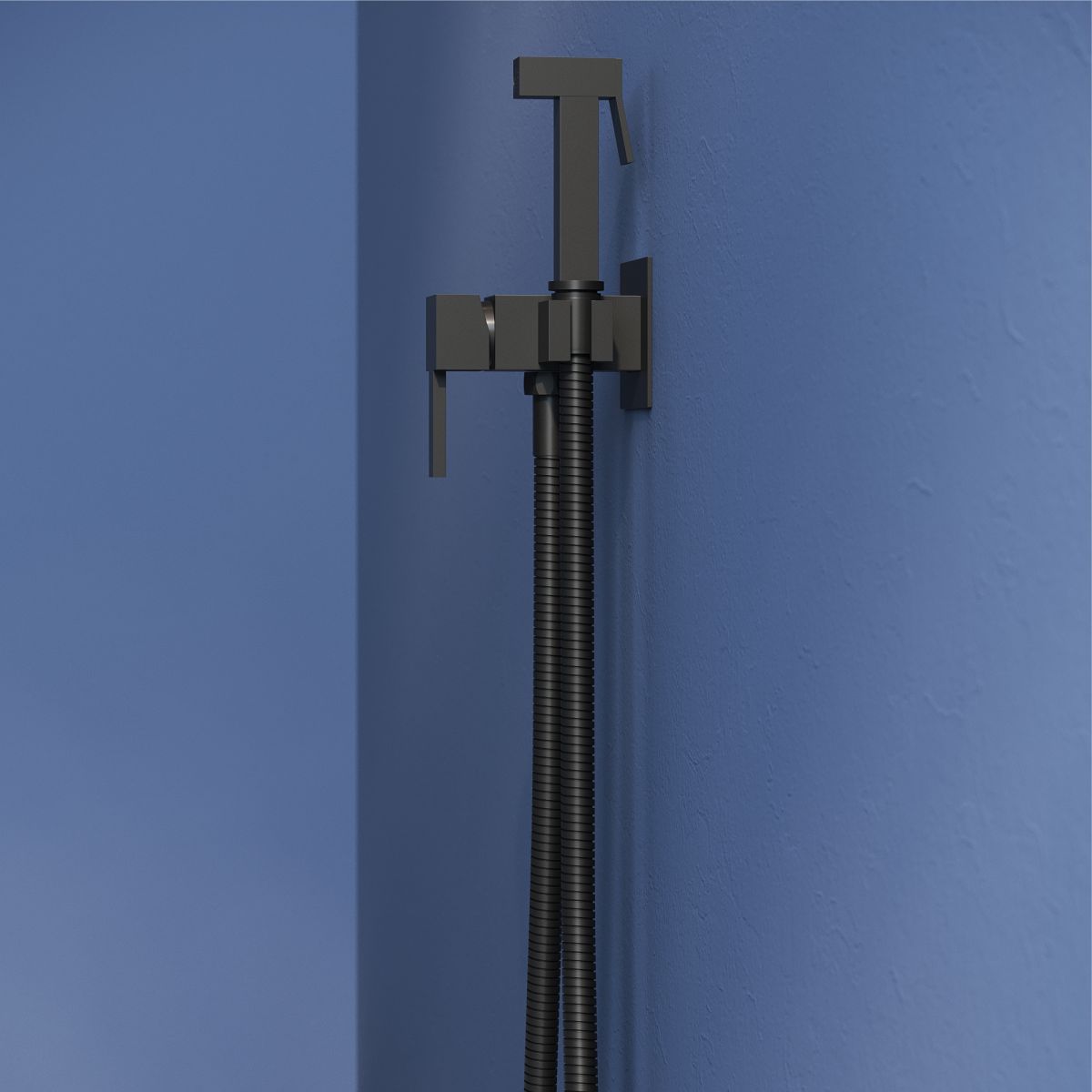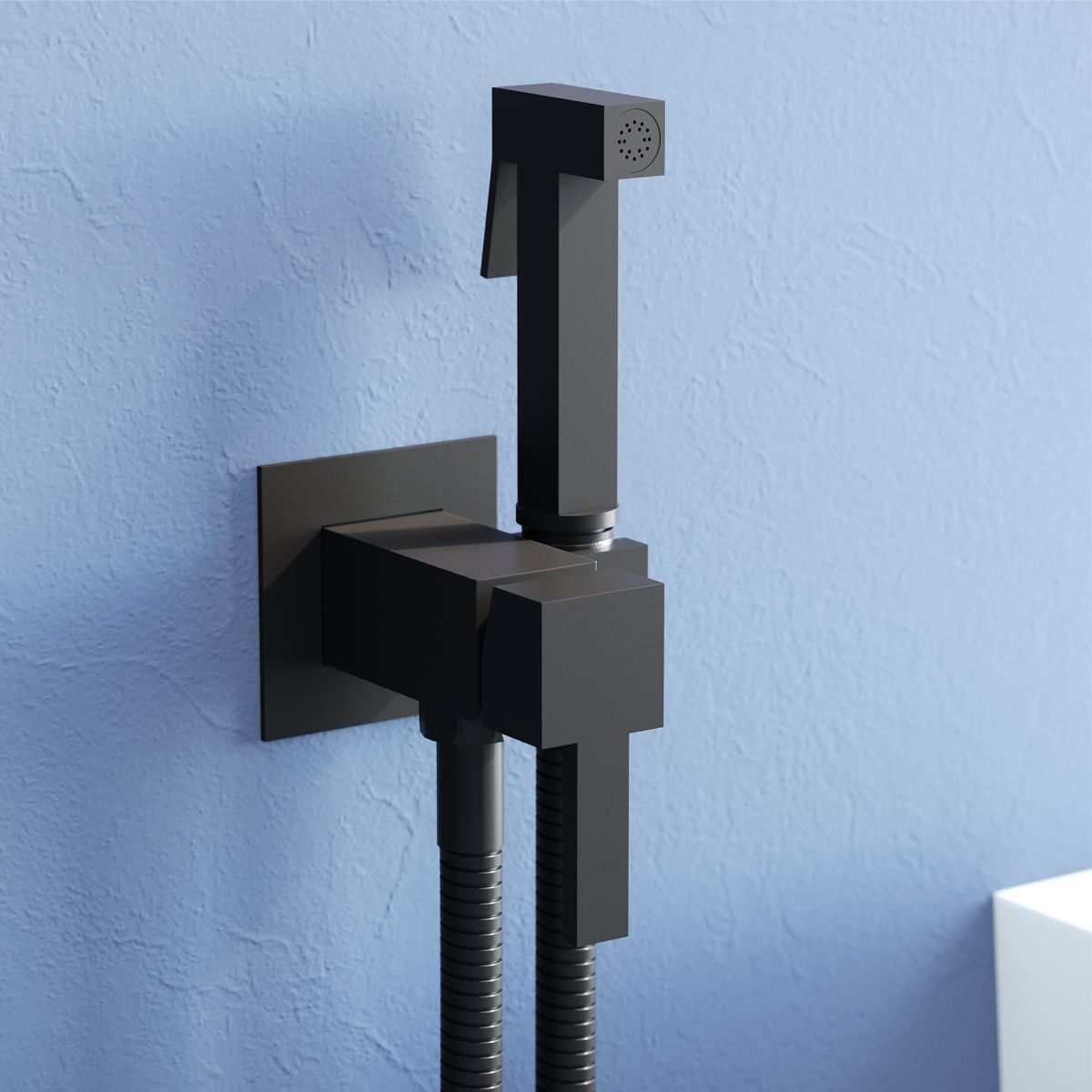 Смеситель квадратной формы с гигиенической лейкой, средняя струя. Струя из гигиенического душа выходит плотная, упругая и направленная. Она может быть как мягкой рассеянной, так и интенсивной, в зависимости от выбранного напора воды. Её температура легко регулируется от прохладной до комфортно тёплой. Вода подаётся равномерно без пульсаций, обеспечивая точное и аккуратное очищение. Форма струи в этой модели узконаправленная, что делает её удобной для гигиенических процедур.