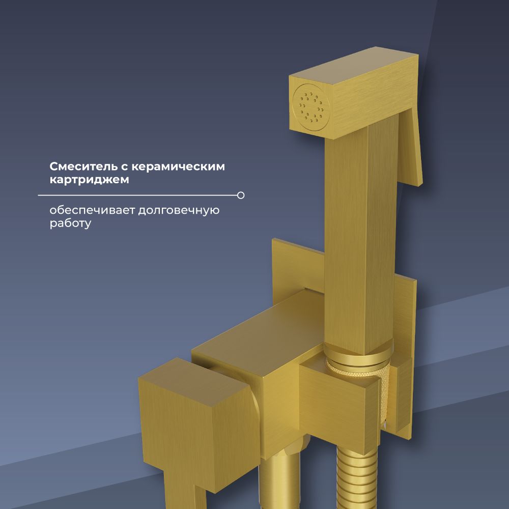 Смеситель квадратной формы с гигиенической лейкой, средняя струя. Струя из гигиенического душа выходит плотная, упругая и направленная. Она может быть как мягкой рассеянной, так и интенсивной, в зависимости от выбранного напора воды. Её температура легко регулируется от прохладной до комфортно тёплой. Вода подаётся равномерно без пульсаций, обеспечивая точное и аккуратное очищение. Форма струи в этой модели узконаправленная, что делает её удобной для гигиенических процедур.