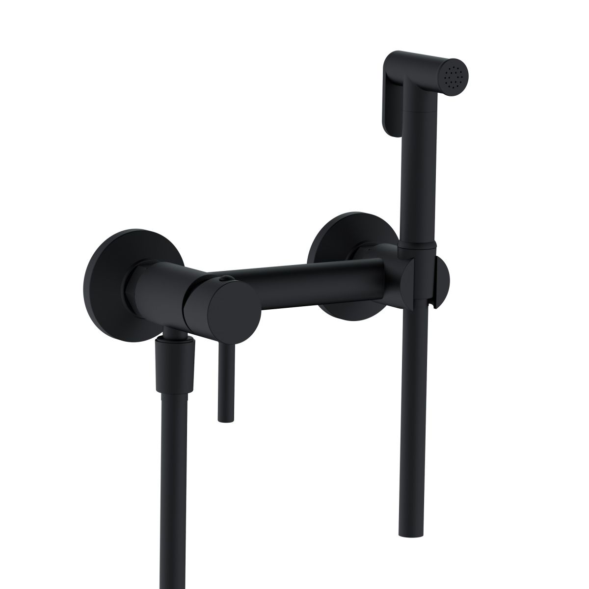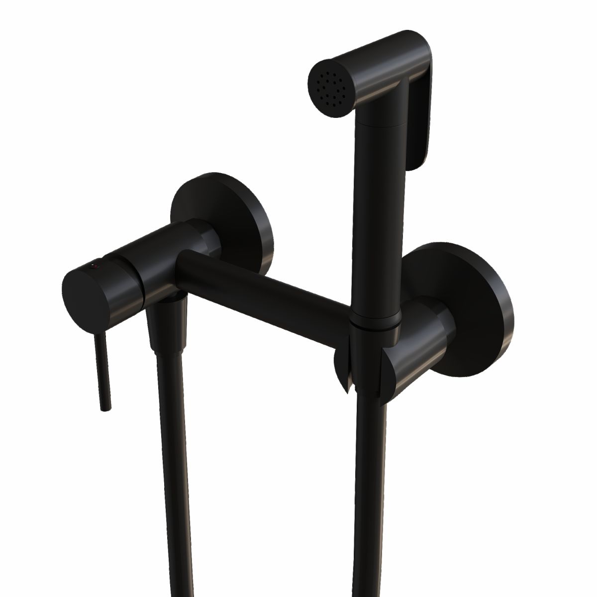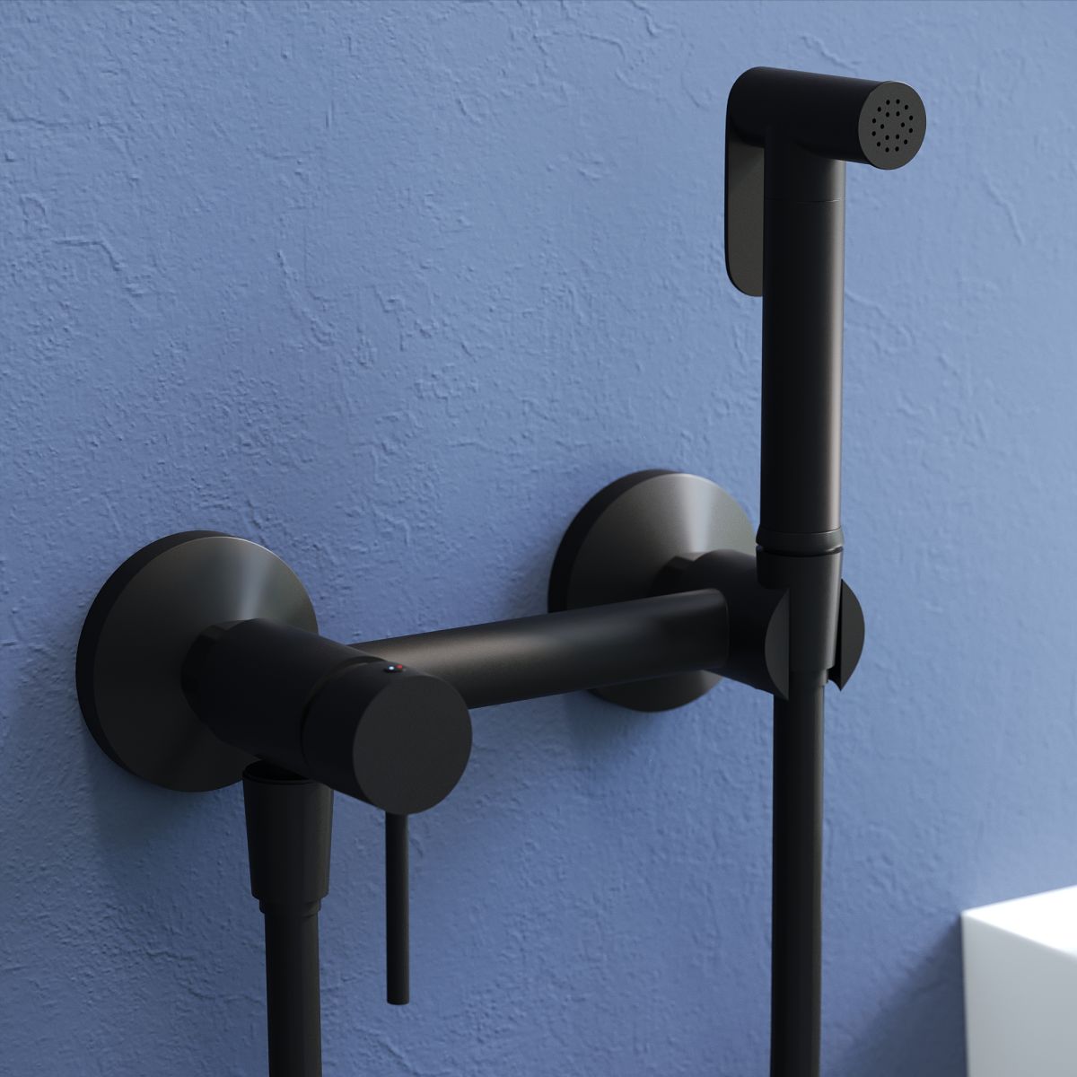 Смеситель круглой формы с рычажным управлением и встроенной опорой для лейки, лейка имеет среднюю струю подачи воды. Струя из гигиенического душа выходит плотная, упругая и направленная. Она может быть как мягкой рассеянной, так и интенсивной, в зависимости от выбранного напора воды. Её температура легко регулируется от прохладной до комфортно-тёплой. Вода подаётся равномерно без пульсаций, обеспечивая точное и аккуратное использование. Форма струи в этой модели узконаправленная, что делает её удобной для гигиенических процедур.