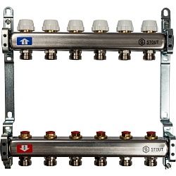 Коллектор из нержавеющей стали без расходомеров STOUT 6 выходов