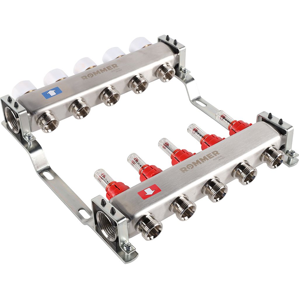 Коллектор из нержавеющей стали с расходомерами ROMMER 5 выходов