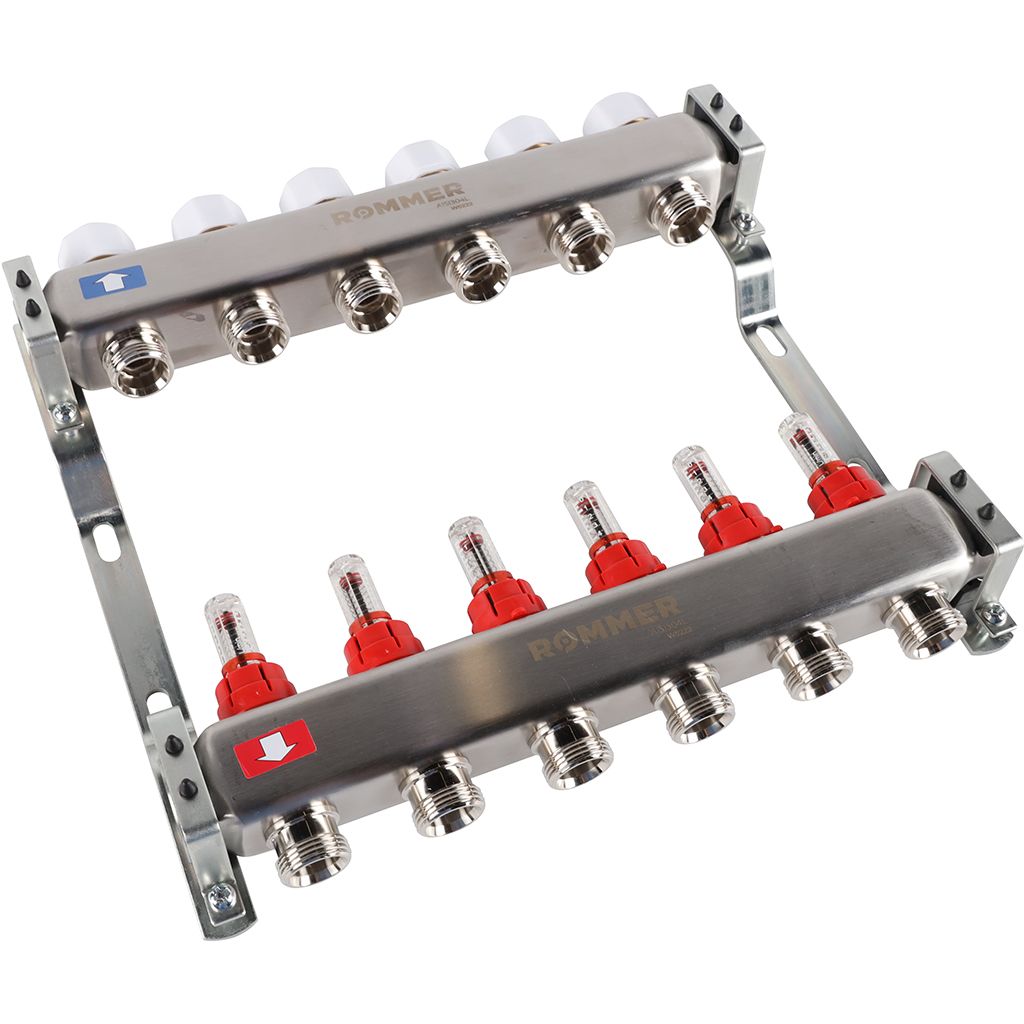 Коллектор из нержавеющей стали с расходомерами ROMMER 6 выходов