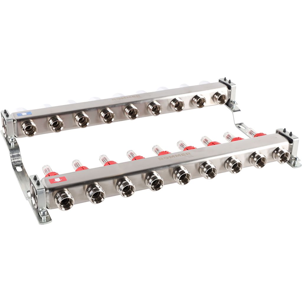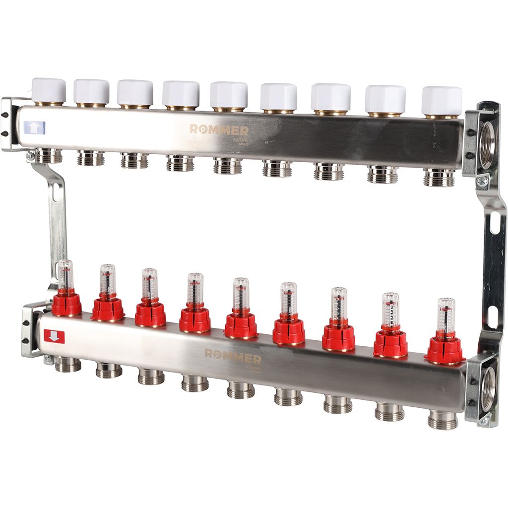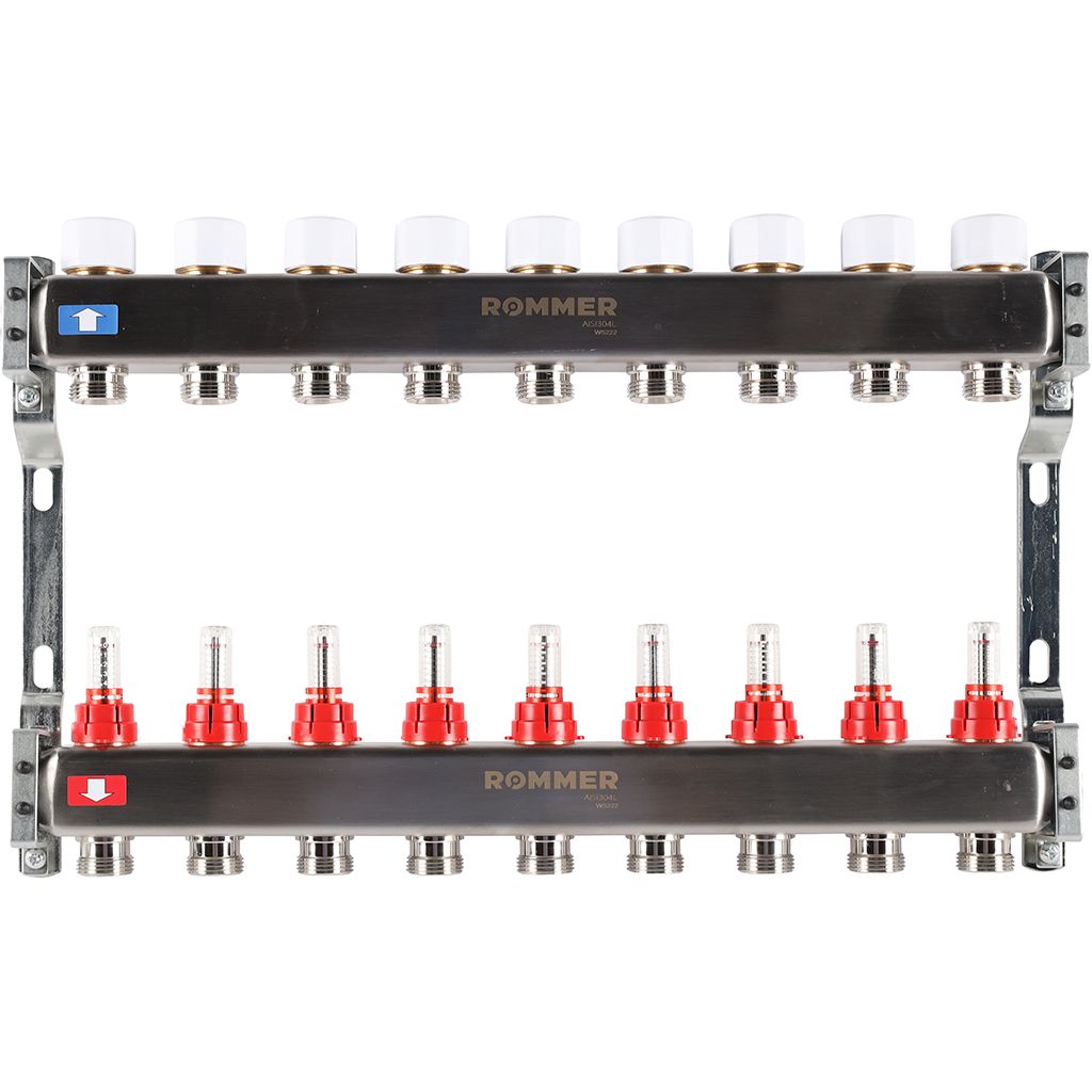 Коллектор из нержавеющей стали с расходомерами ROMMER 9 выходов
