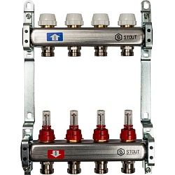 Коллектор из нержавеющей стали с расходомерами STOUT 4 выхода