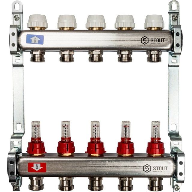 Коллектор из нержавеющей стали с расходомерами STOUT 5 выходов