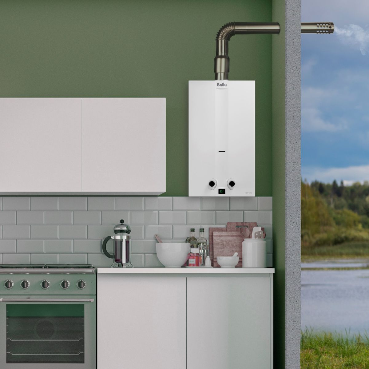 Серия водонагревателей Fiery Turbo разработана специально для домов с отсутствием дымохода или естественной тяги. Продукты сгорания отводятся из камеры сгорания на улицу с помощью принудительной тяги, которую создает автоматический вентилятор, встроенный в прибор.