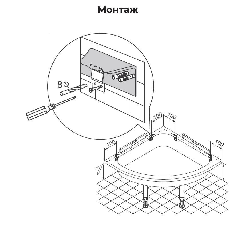 Данный комплект предназначен для дополнительного крепления поддона к стенам, который установлен на опору.