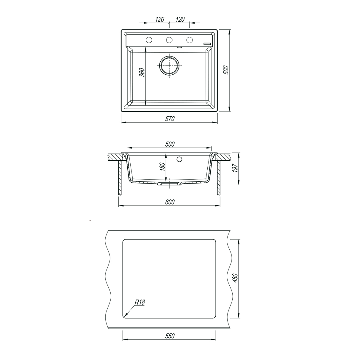 Кухонная мойка Lemark HANKA 570 врезная прямоугольная из кварцгранита